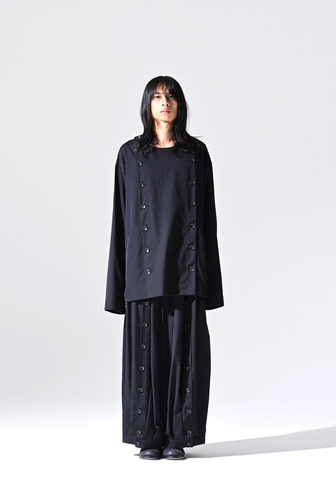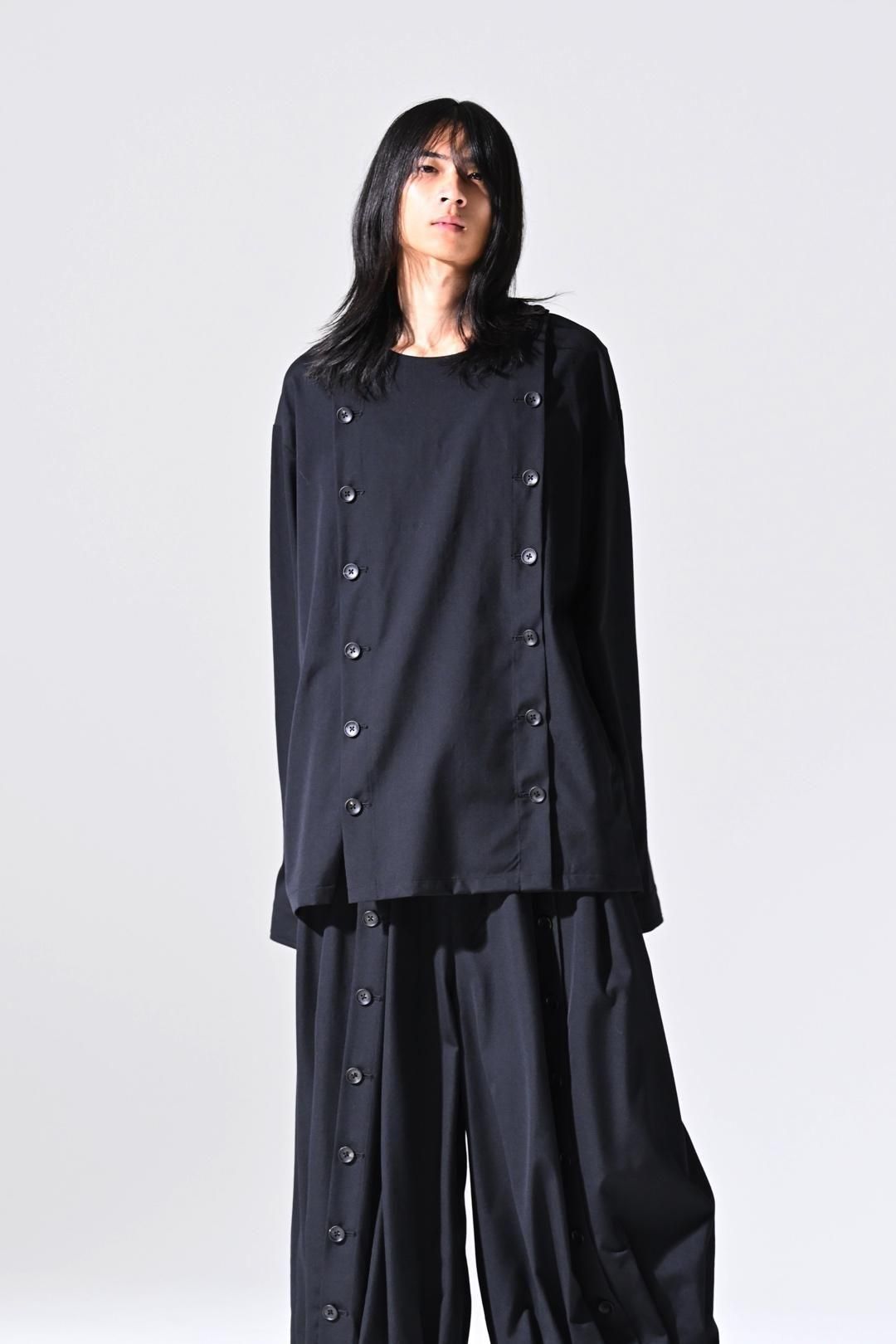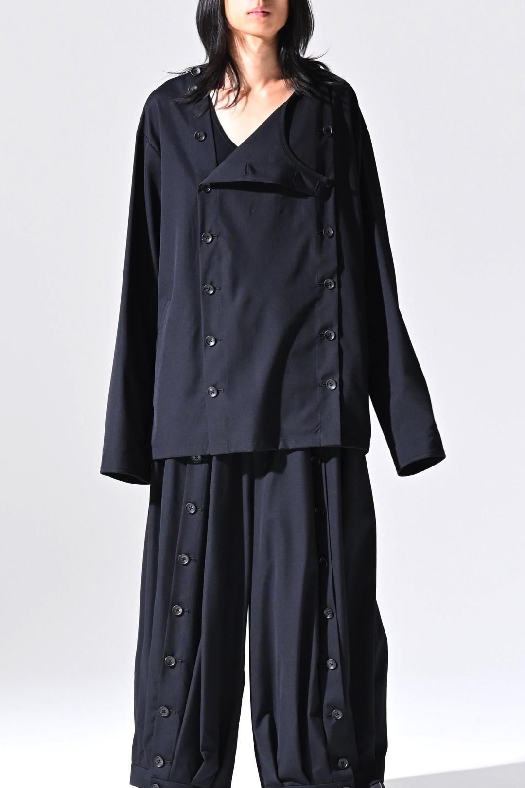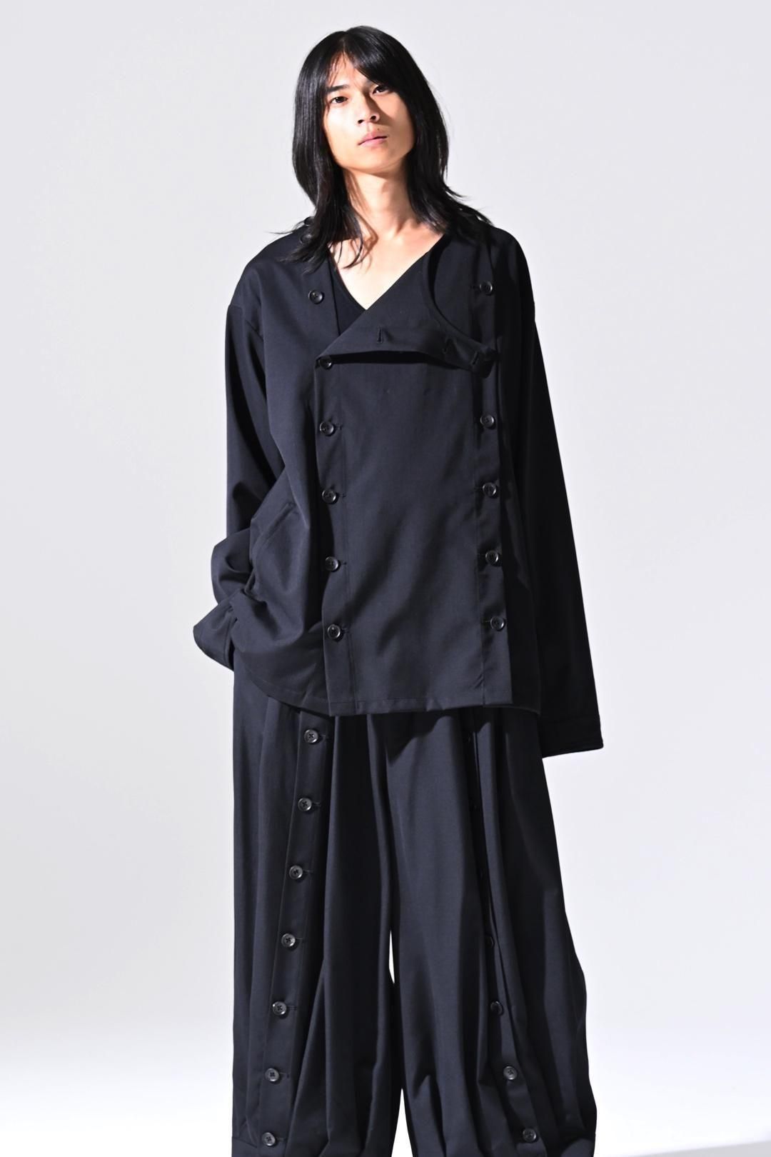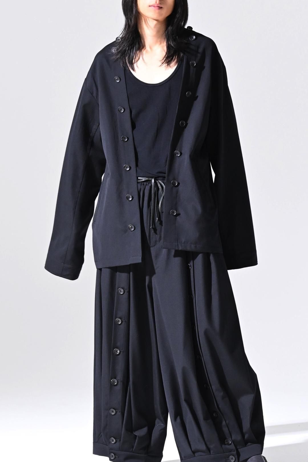 縦に10個配置した本水牛ボタンの重厚な雰囲気をお楽しみ頂くことが可能な1着。