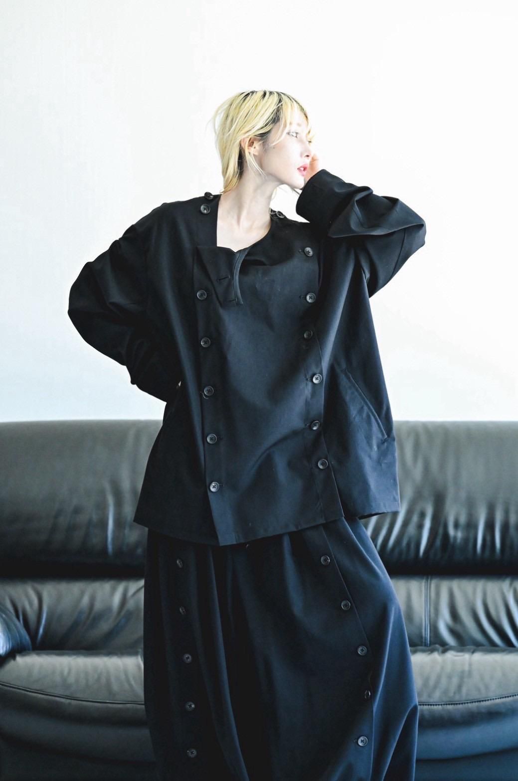 お好みでボタンを開閉して、スタイルに合わせてお召しください。