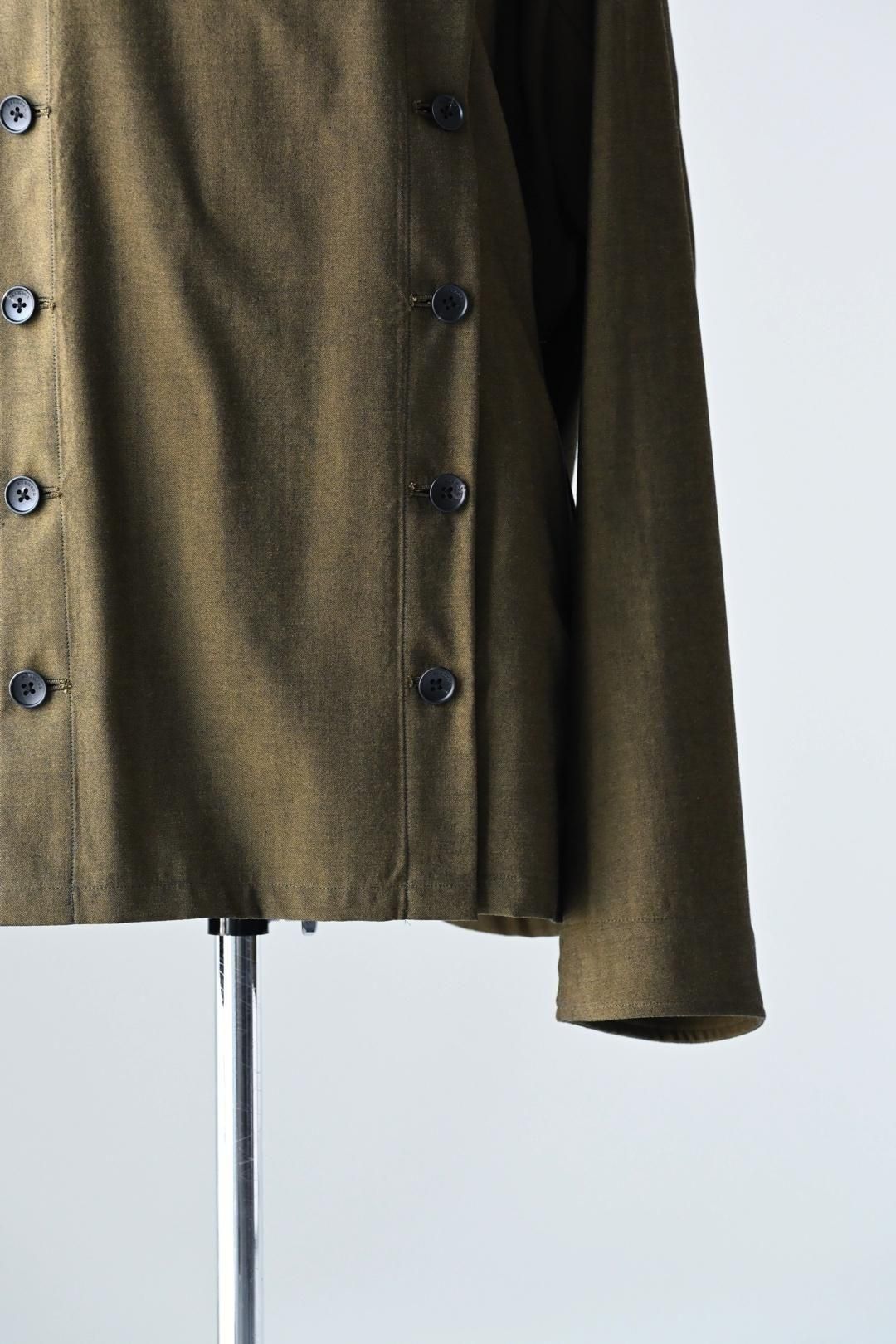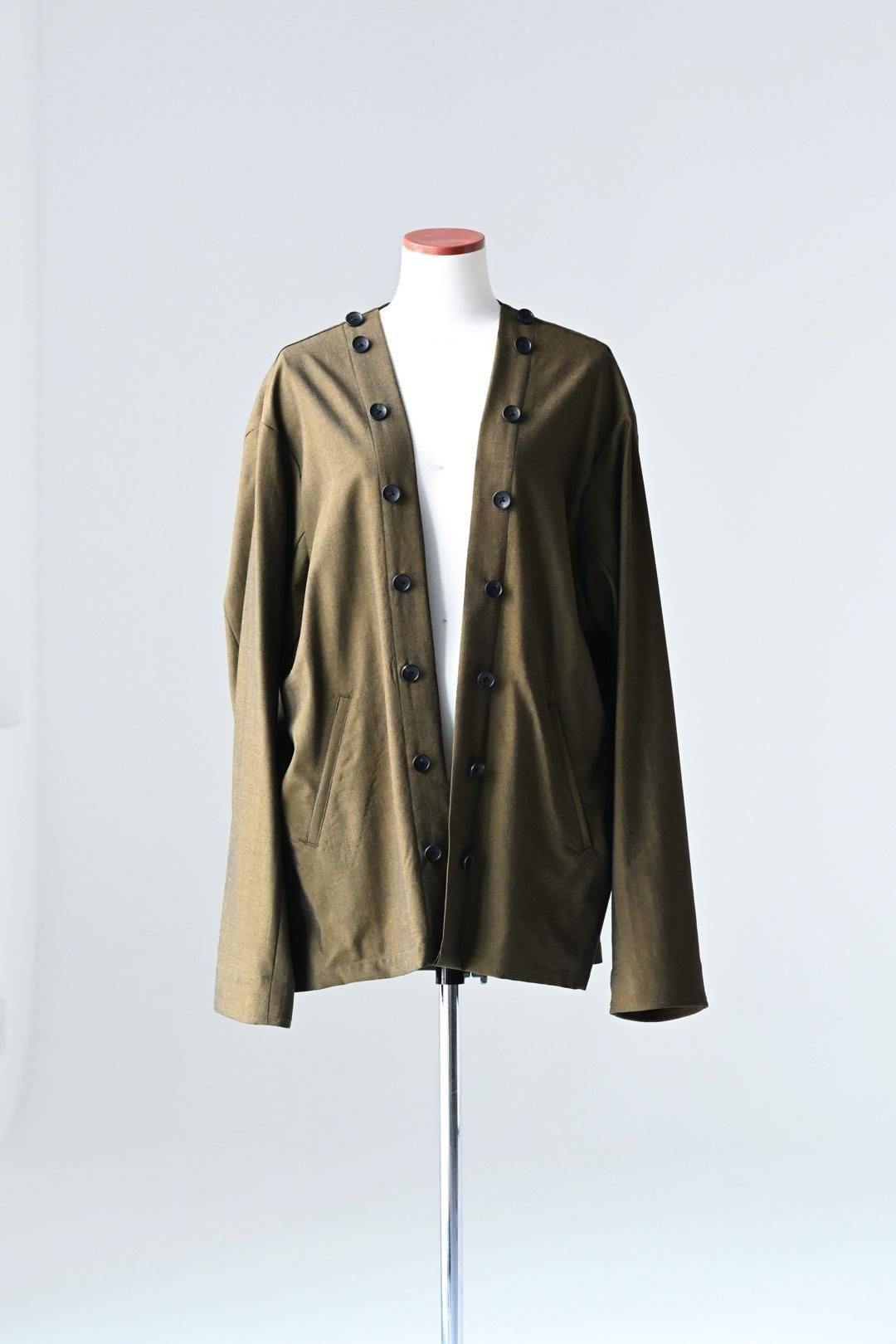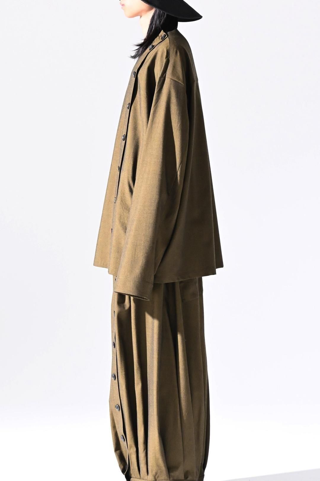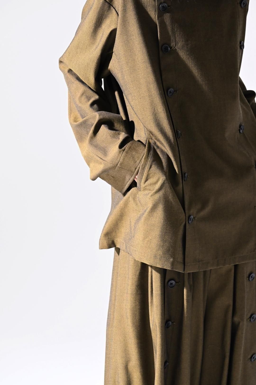 高級毛織物の産地"尾州"でBISHOOLオリジナルで生産したウールギャバジンを分量多く使用し、職人が手掛ける本水牛ボタンを贅沢に配したシャツジャケット。