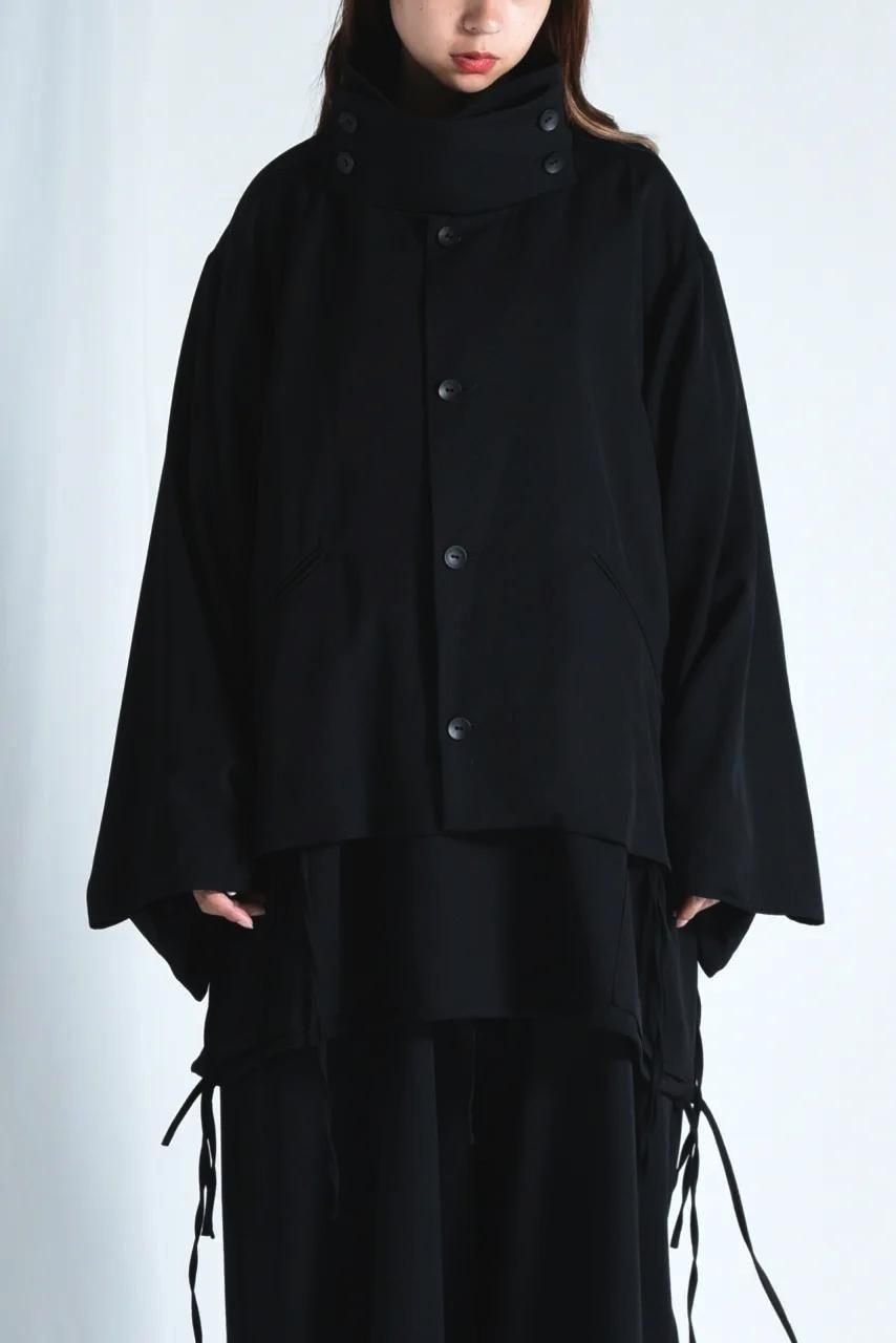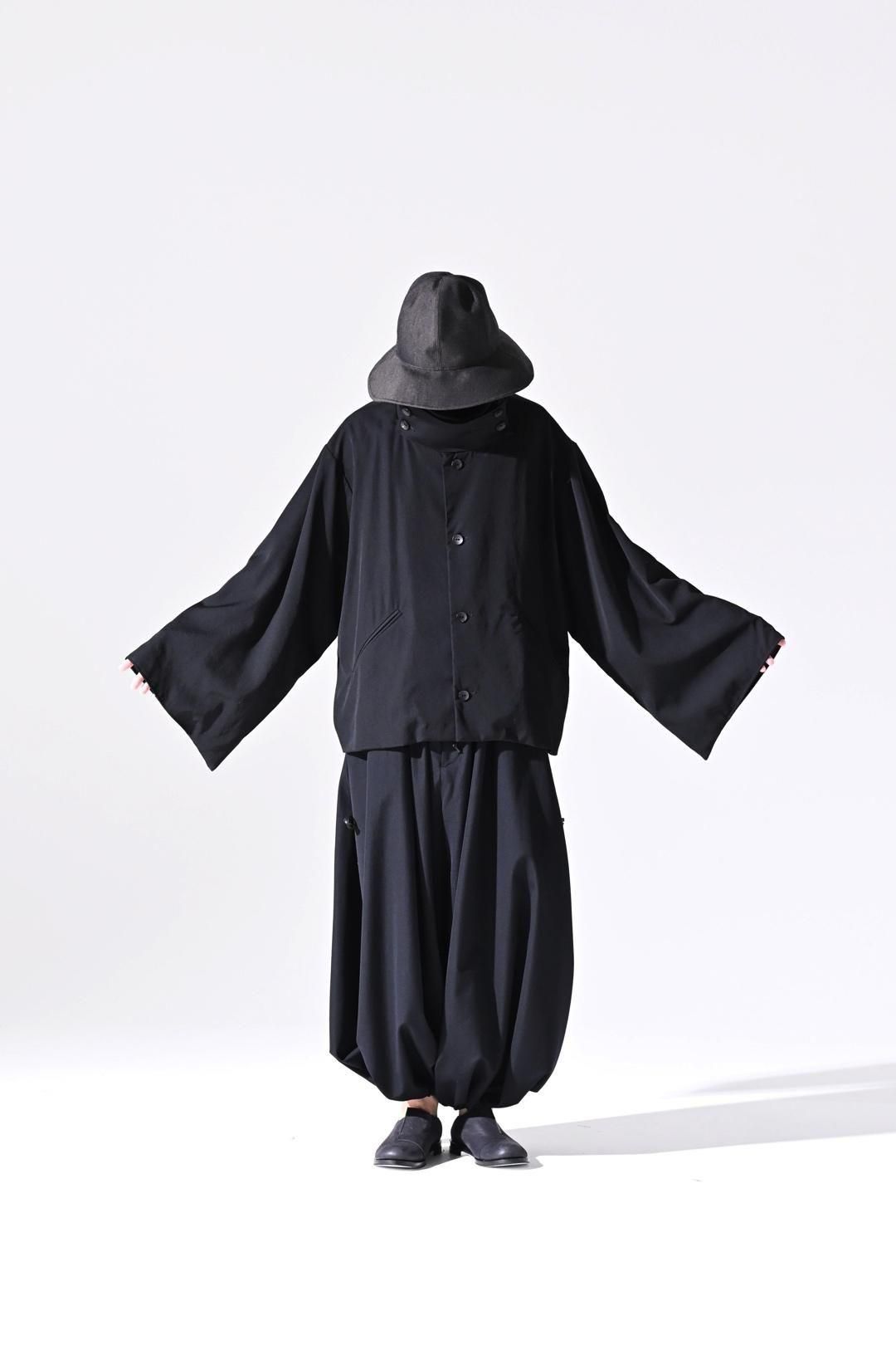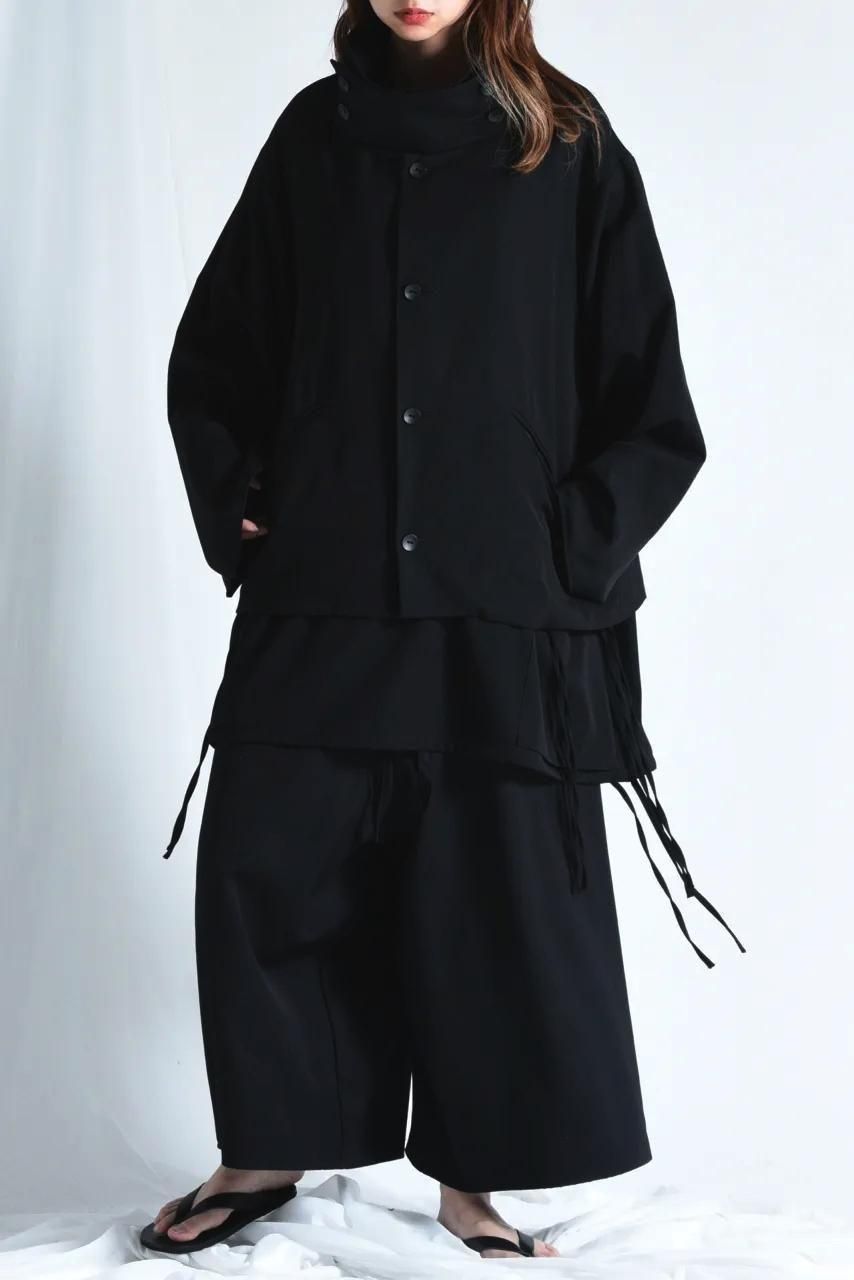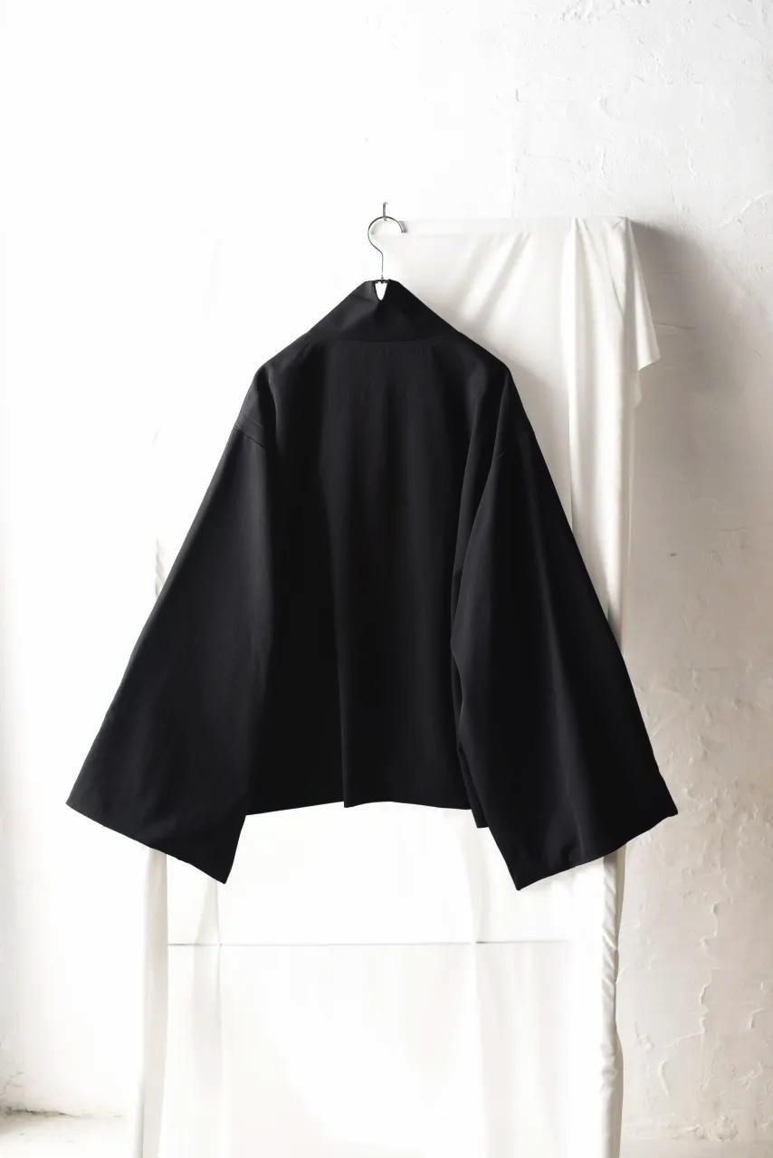 着物の雰囲気を持ったワイドスリーブを採用したスタンドジャケット。