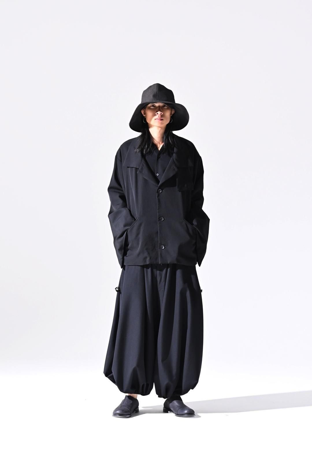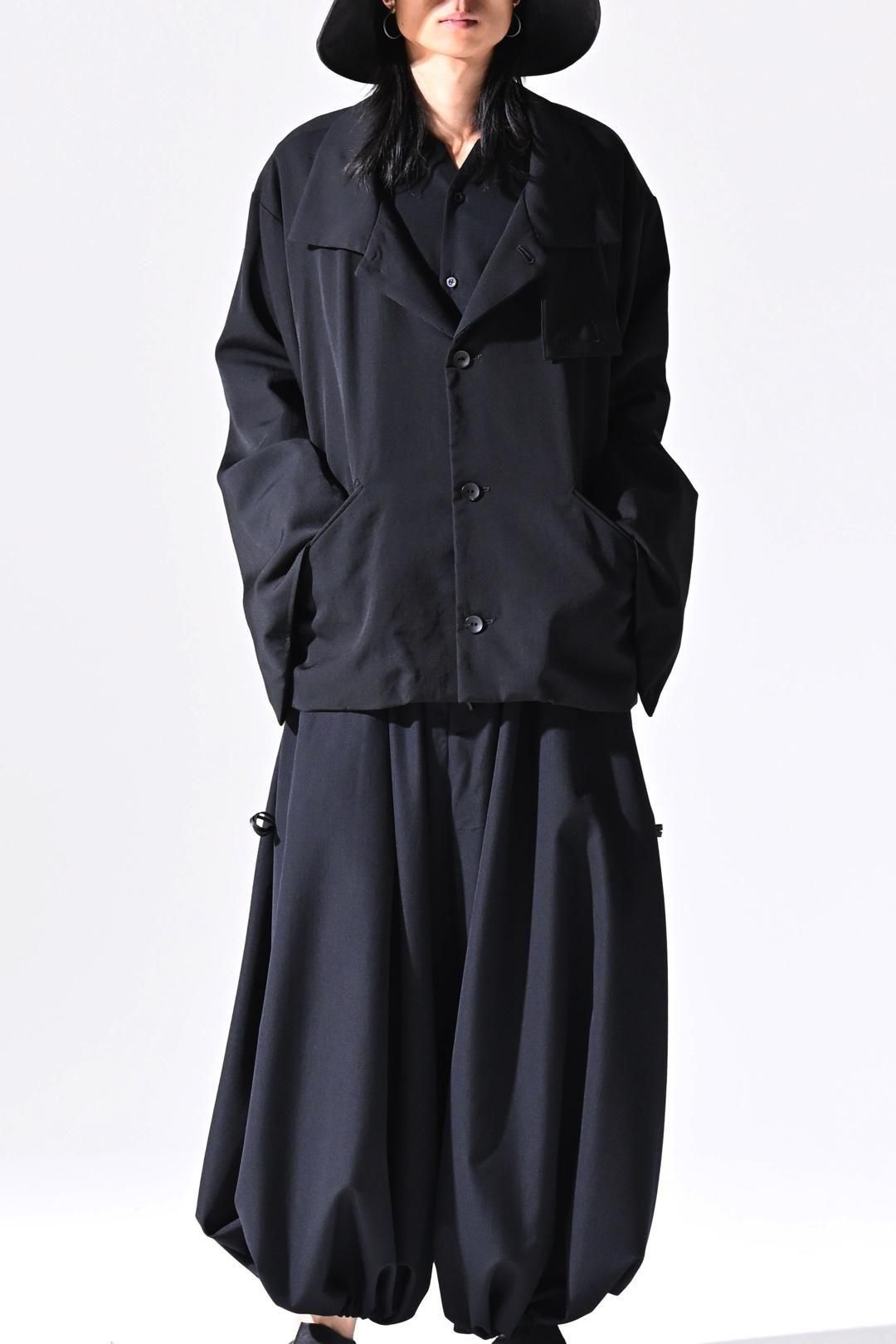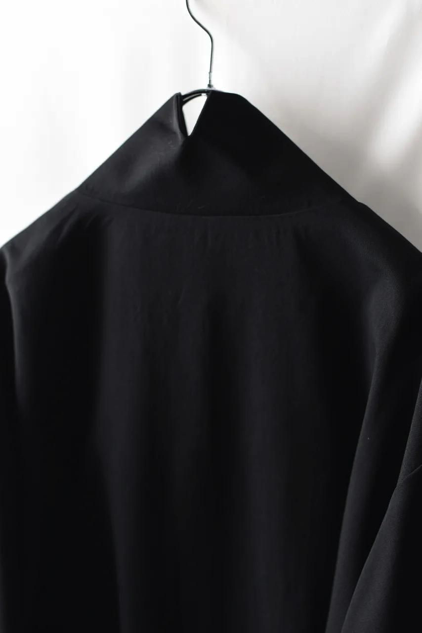 着物の雰囲気を持ったワイドスリーブを採用したスタンドジャケット。