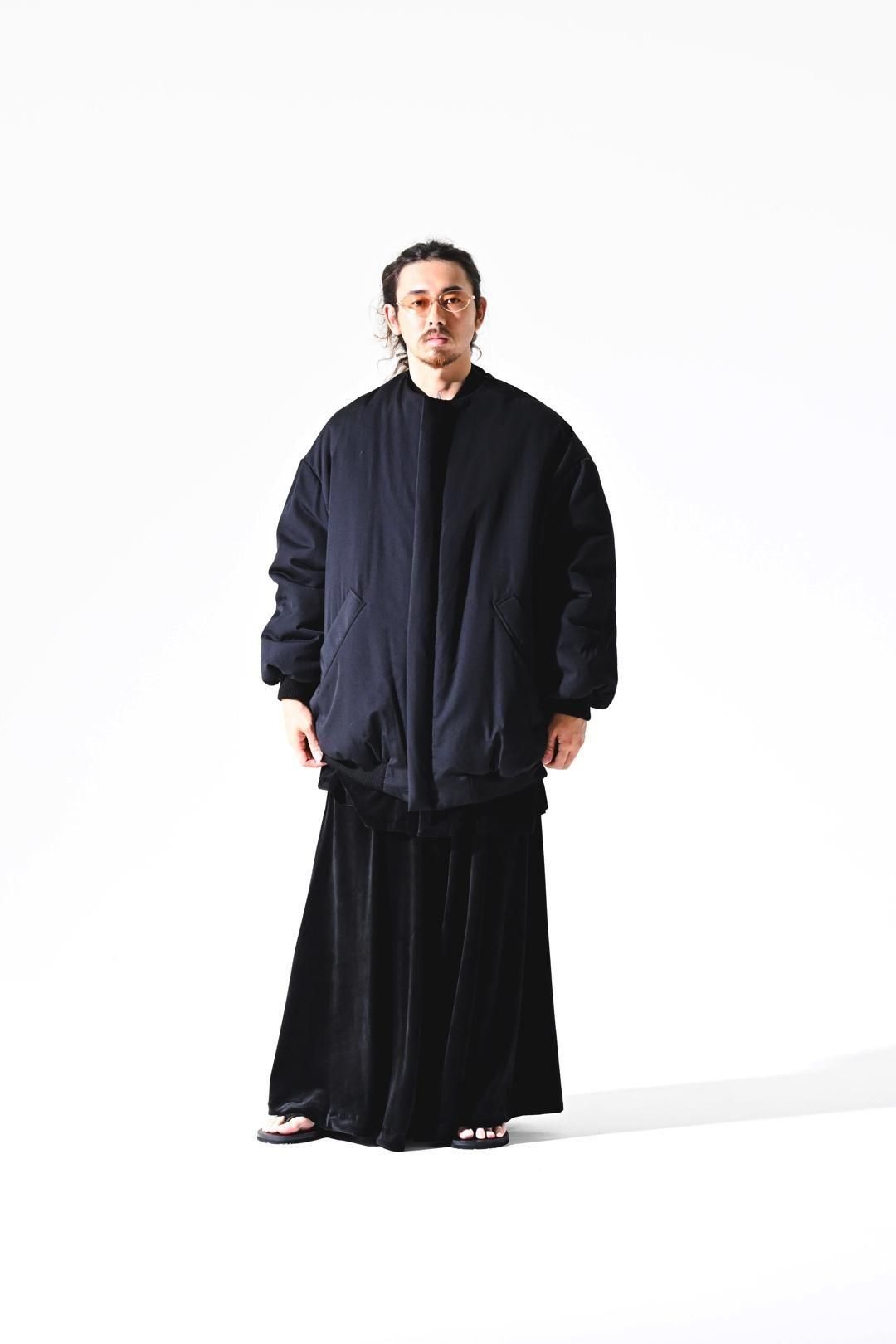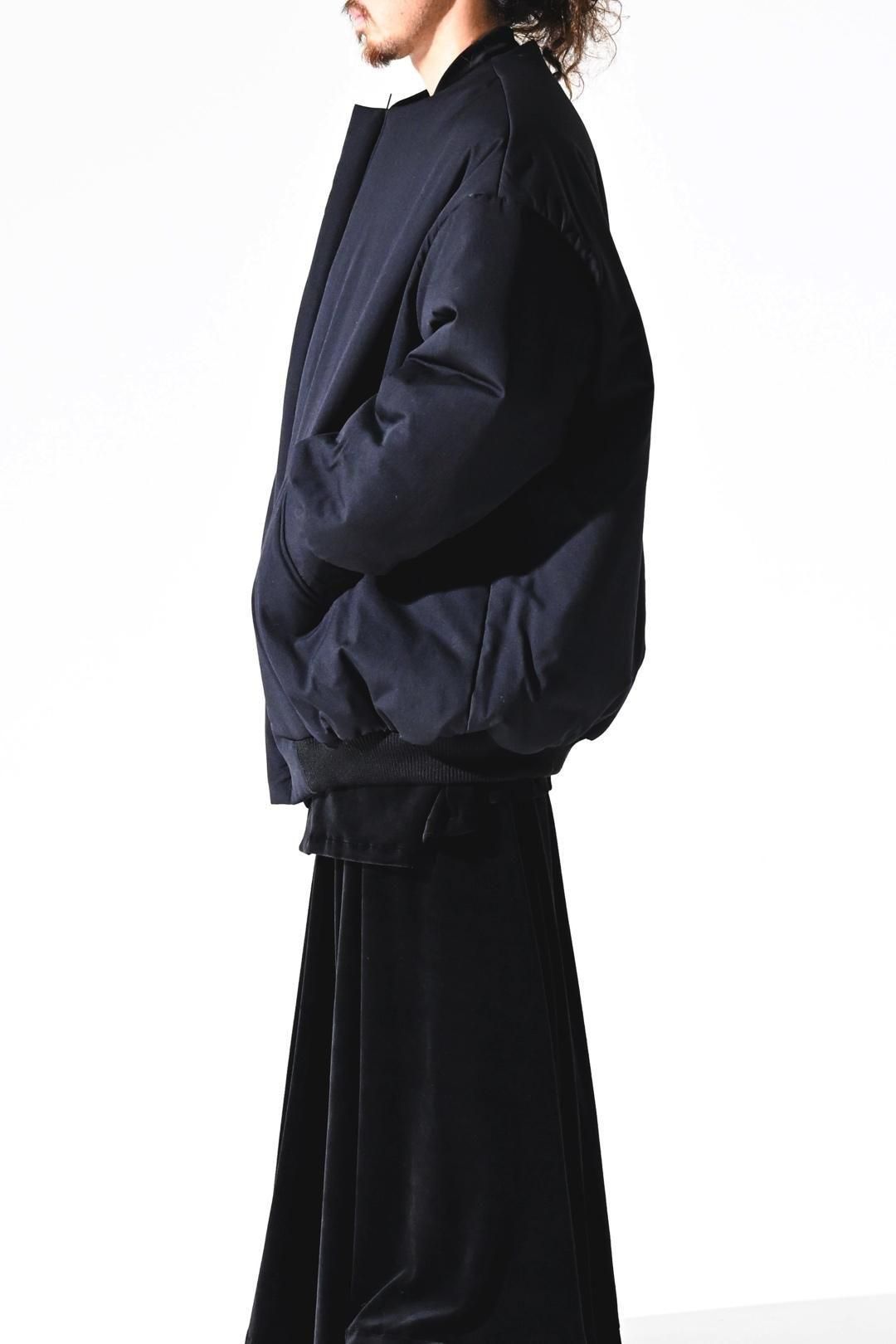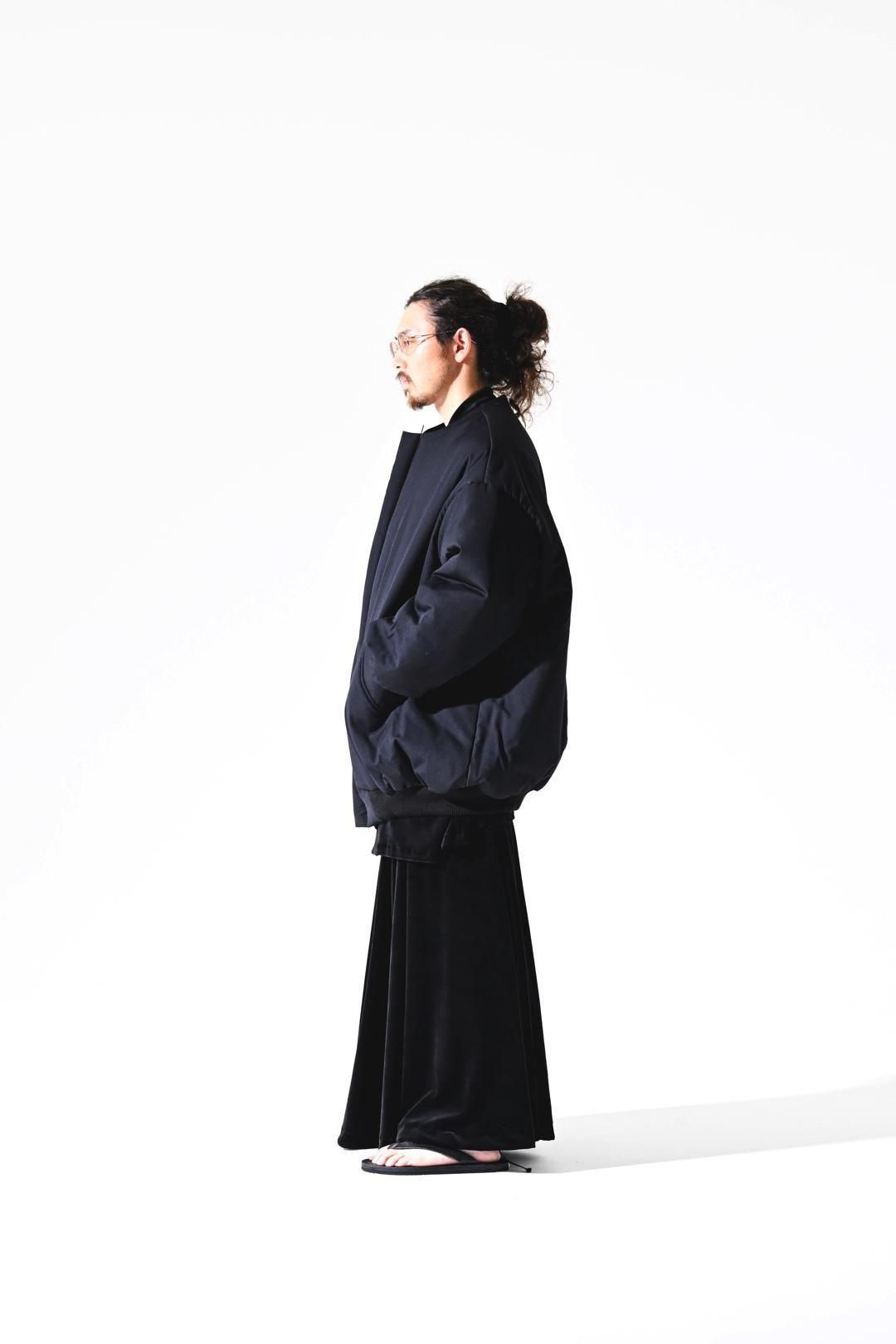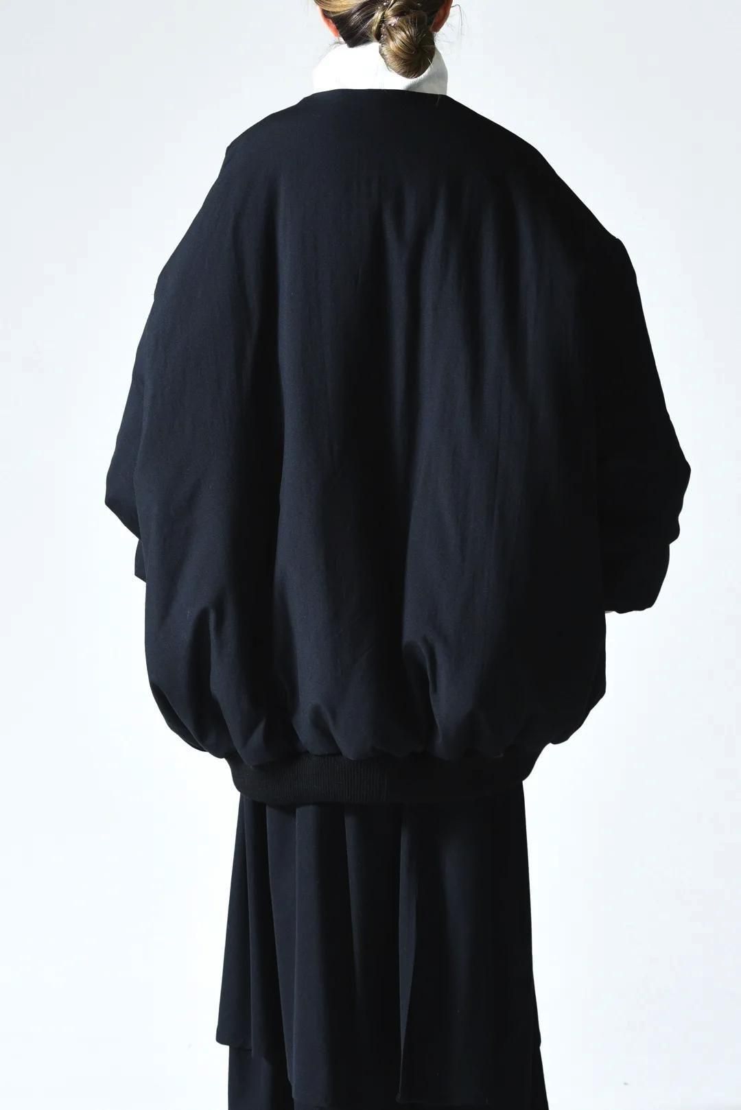 オーバーなサイジングで袖/裾をリブで留める仕様のため、