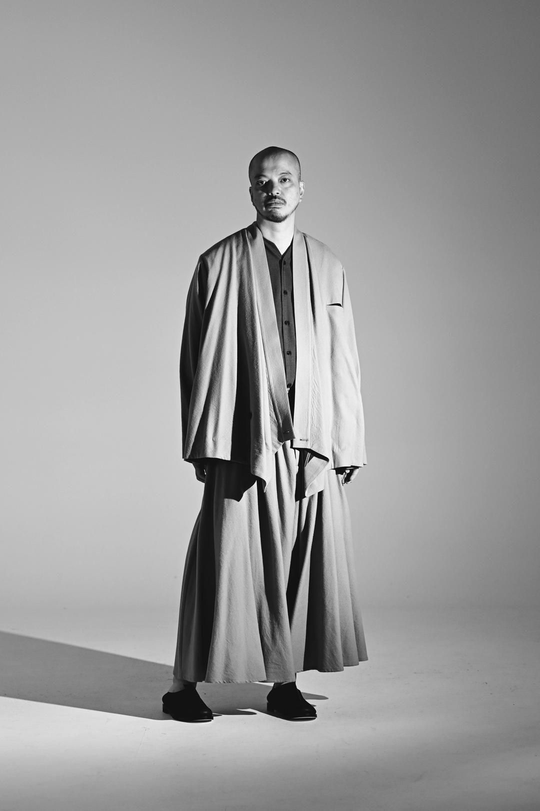 裾幅一周190cmに設定し、生地分量多く使用して仕立てたドレープパンツ。