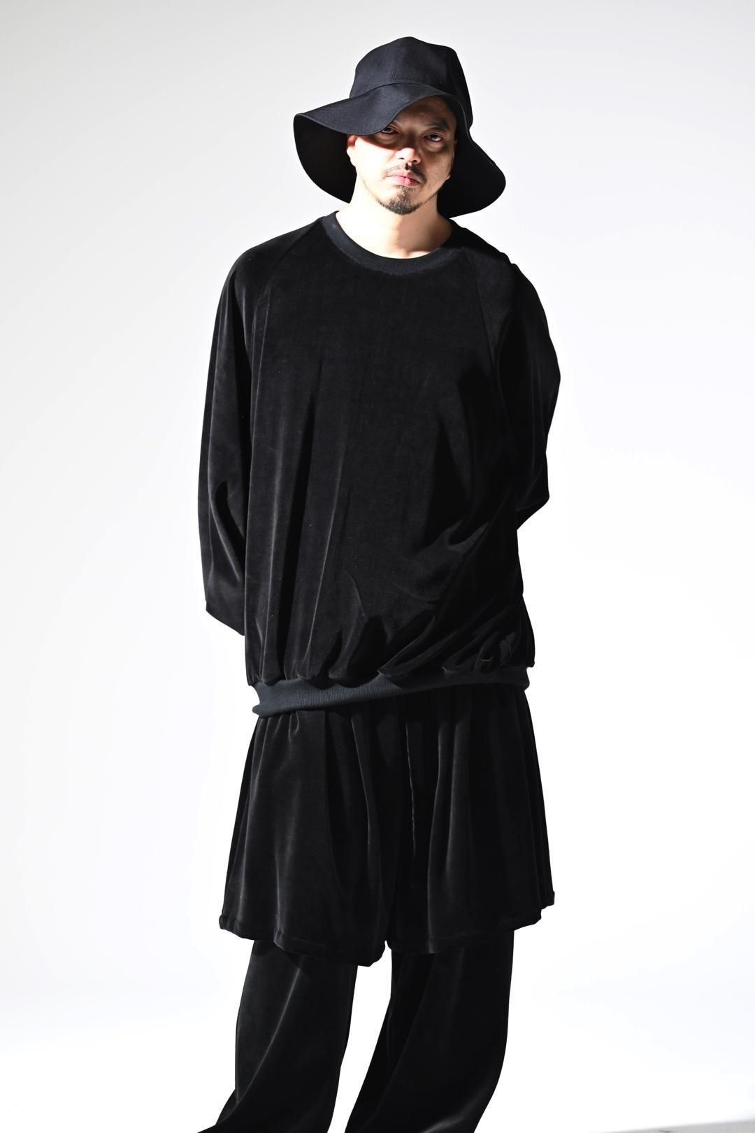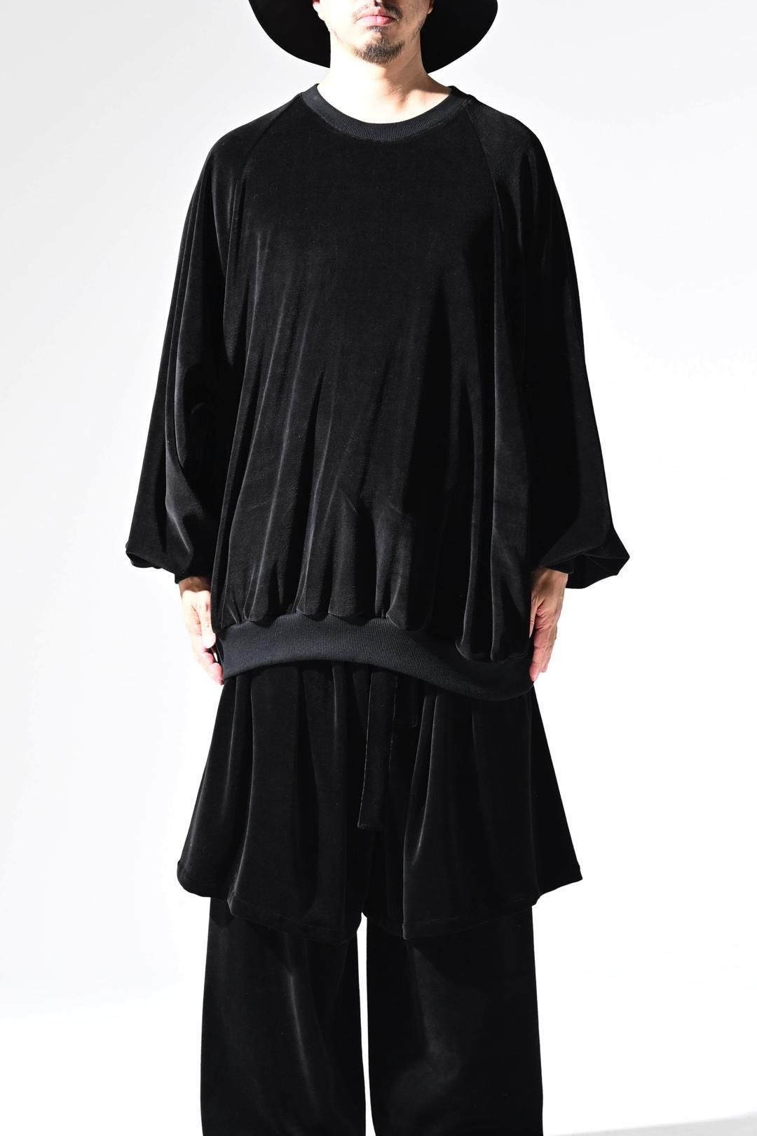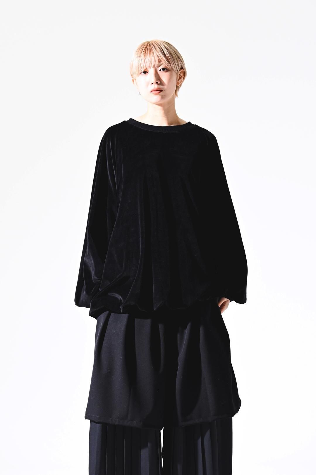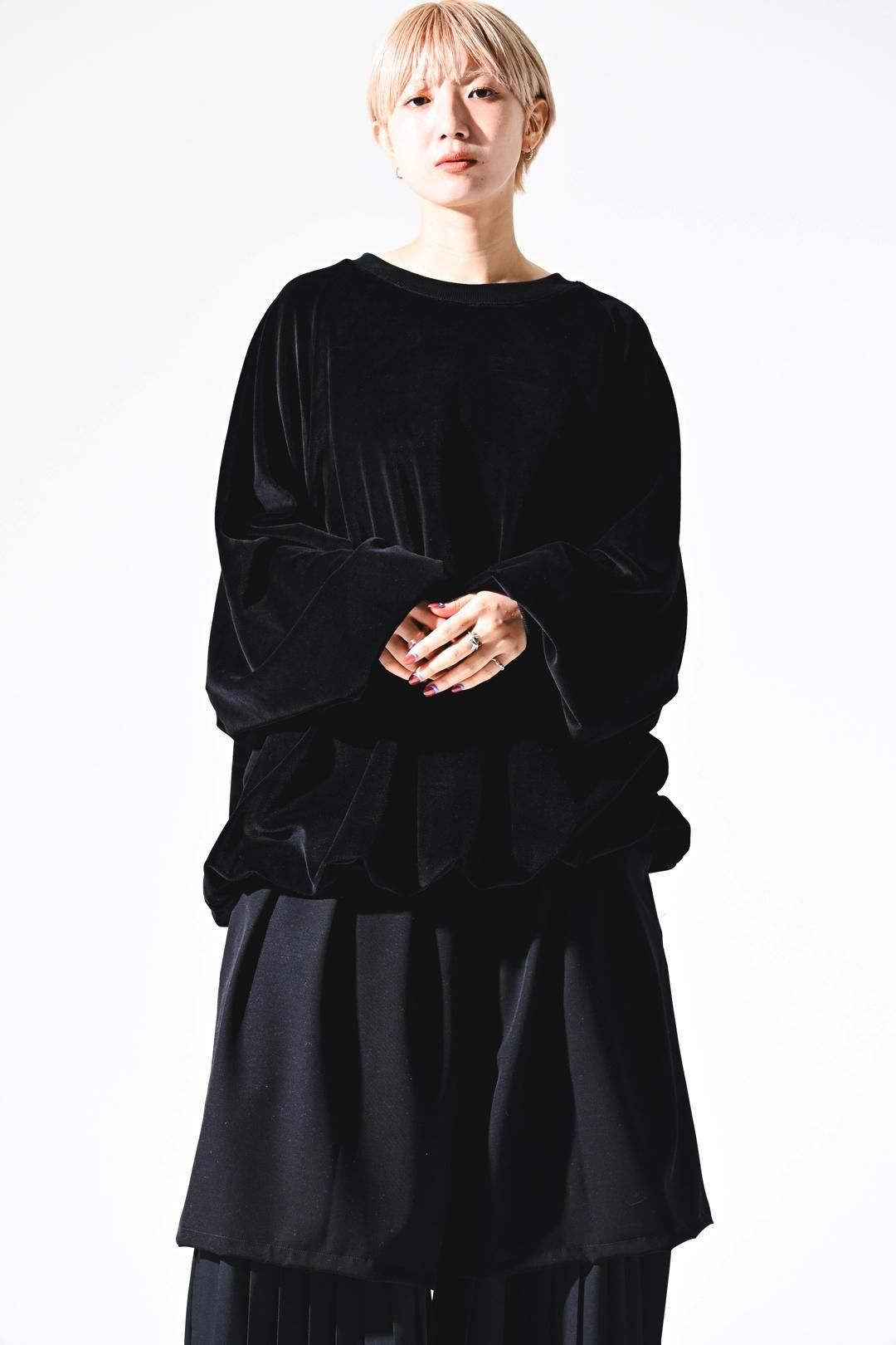 ベロア生地をメインに、首周りにはリブを使用した、