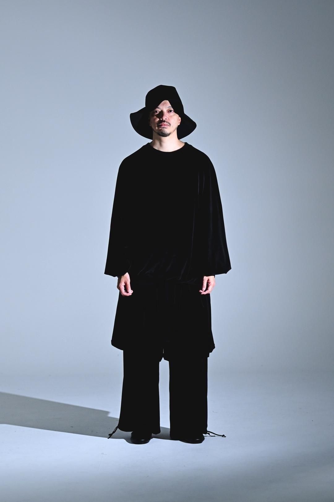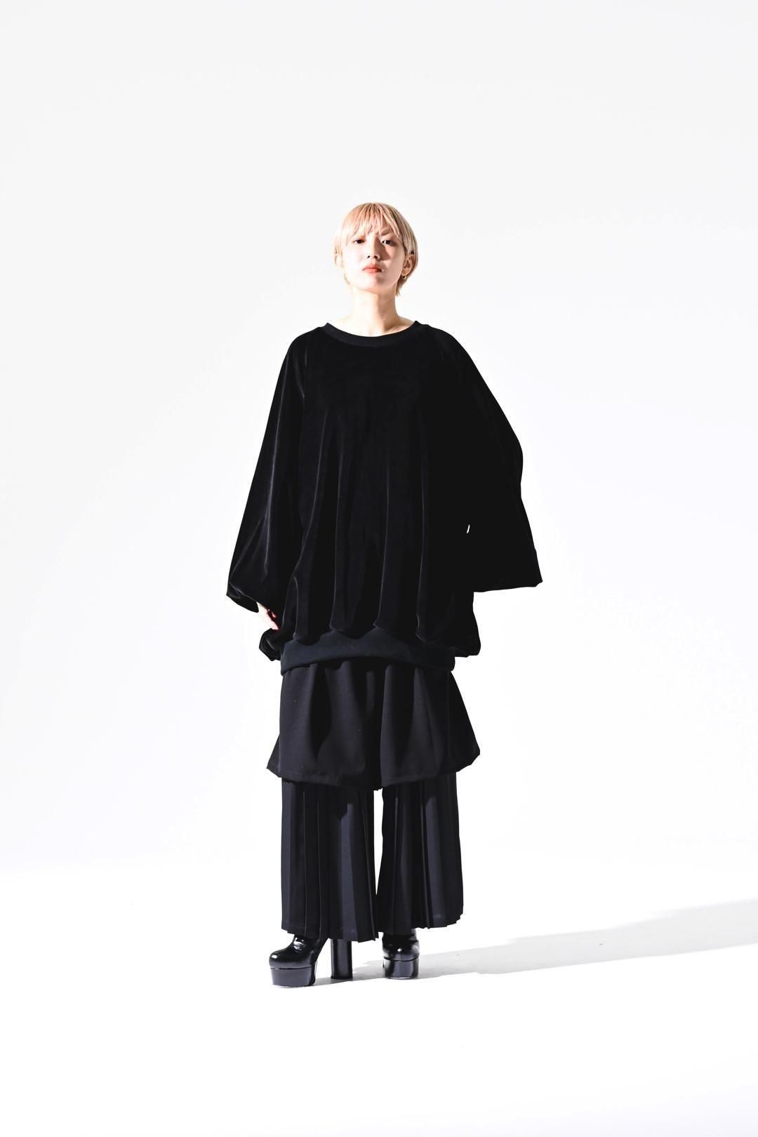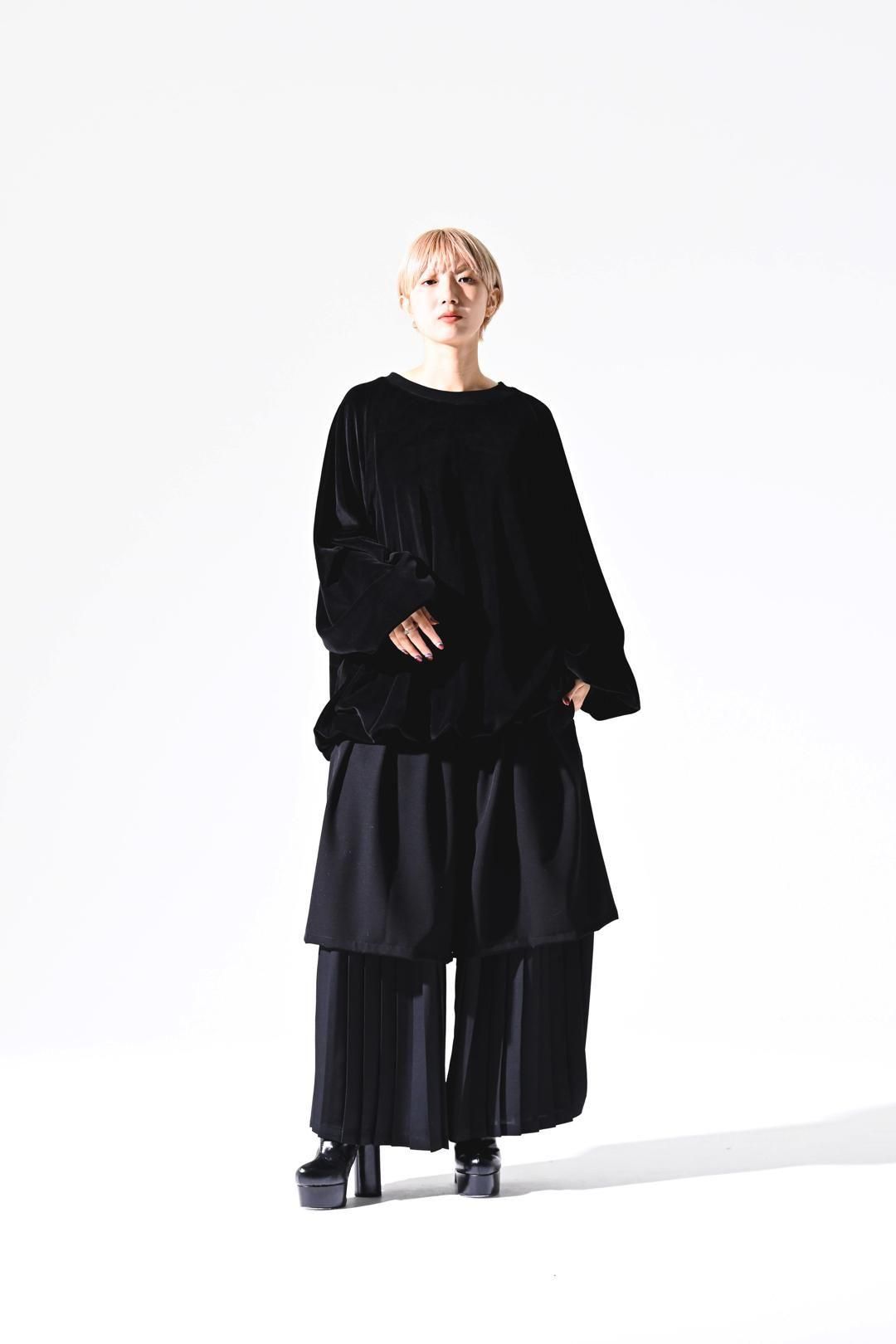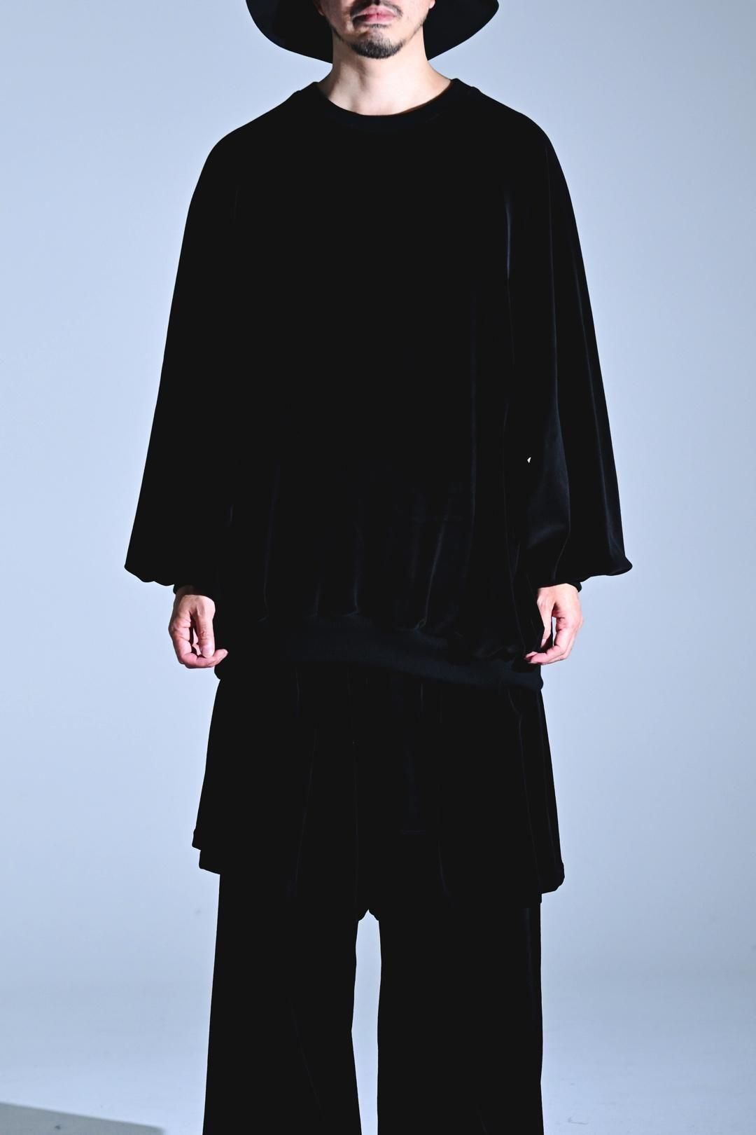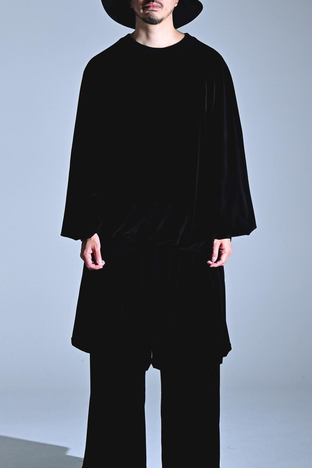 ベロア生地をメインに、首周りにはリブを使用した、