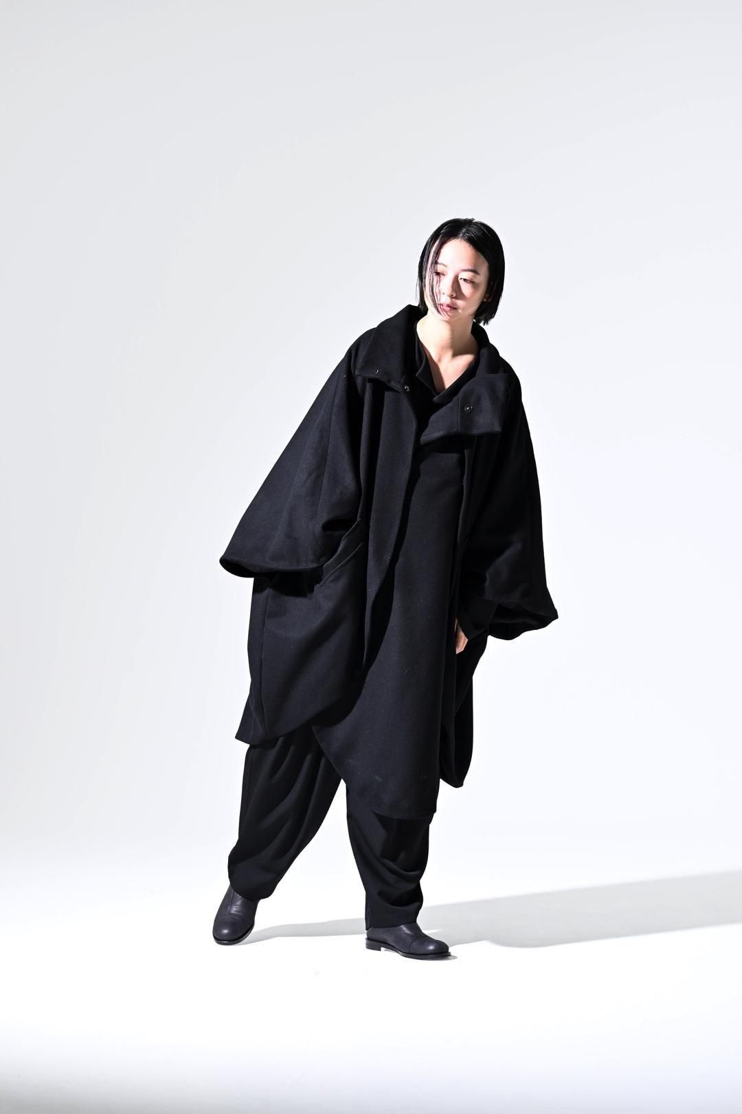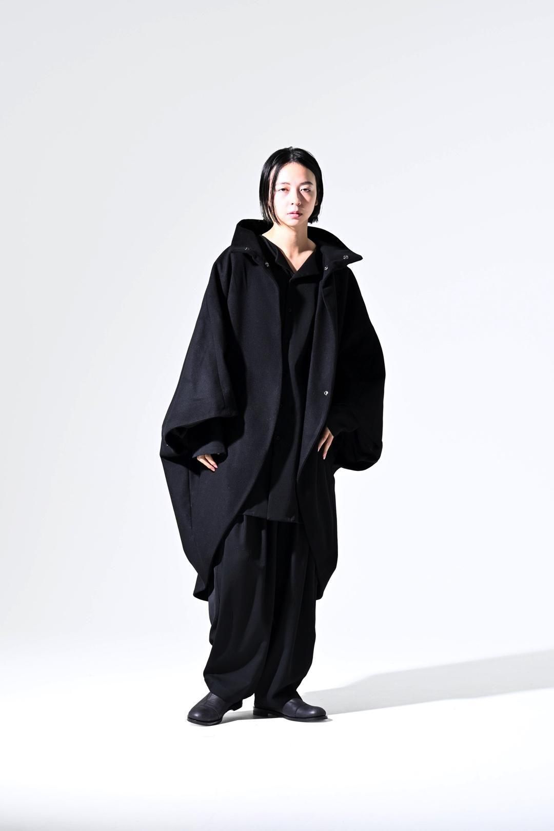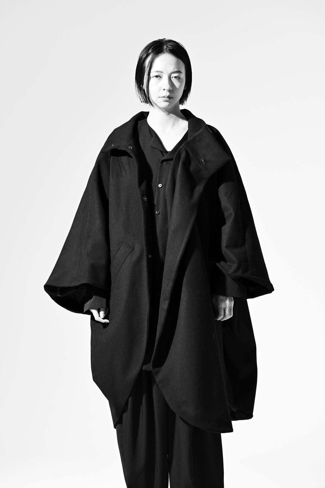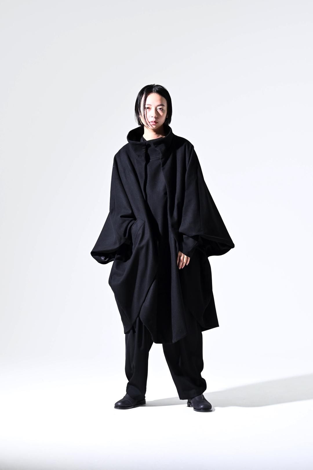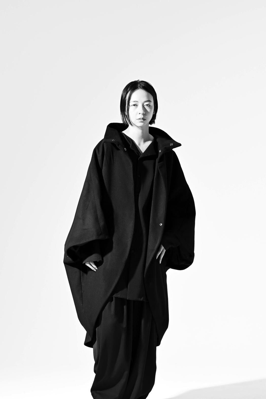 袖は深く、身幅は広く構築しながらも、着た瞬間に重心が落ち着く様に設計しております。