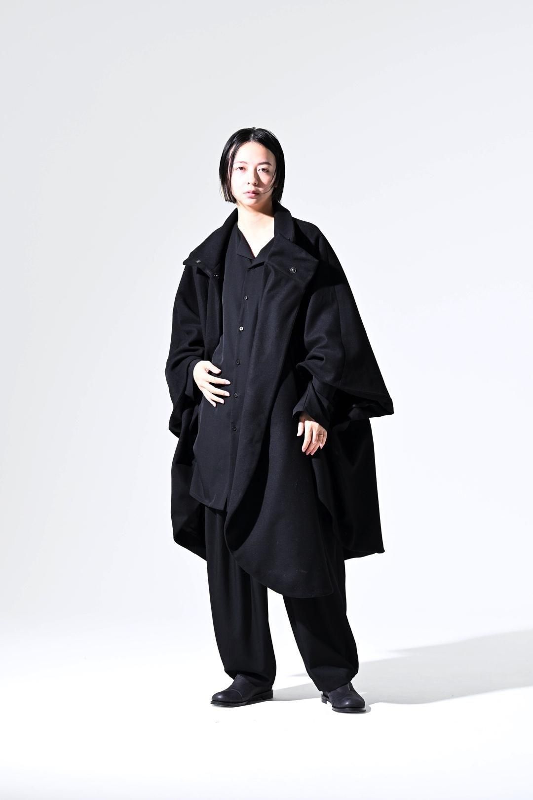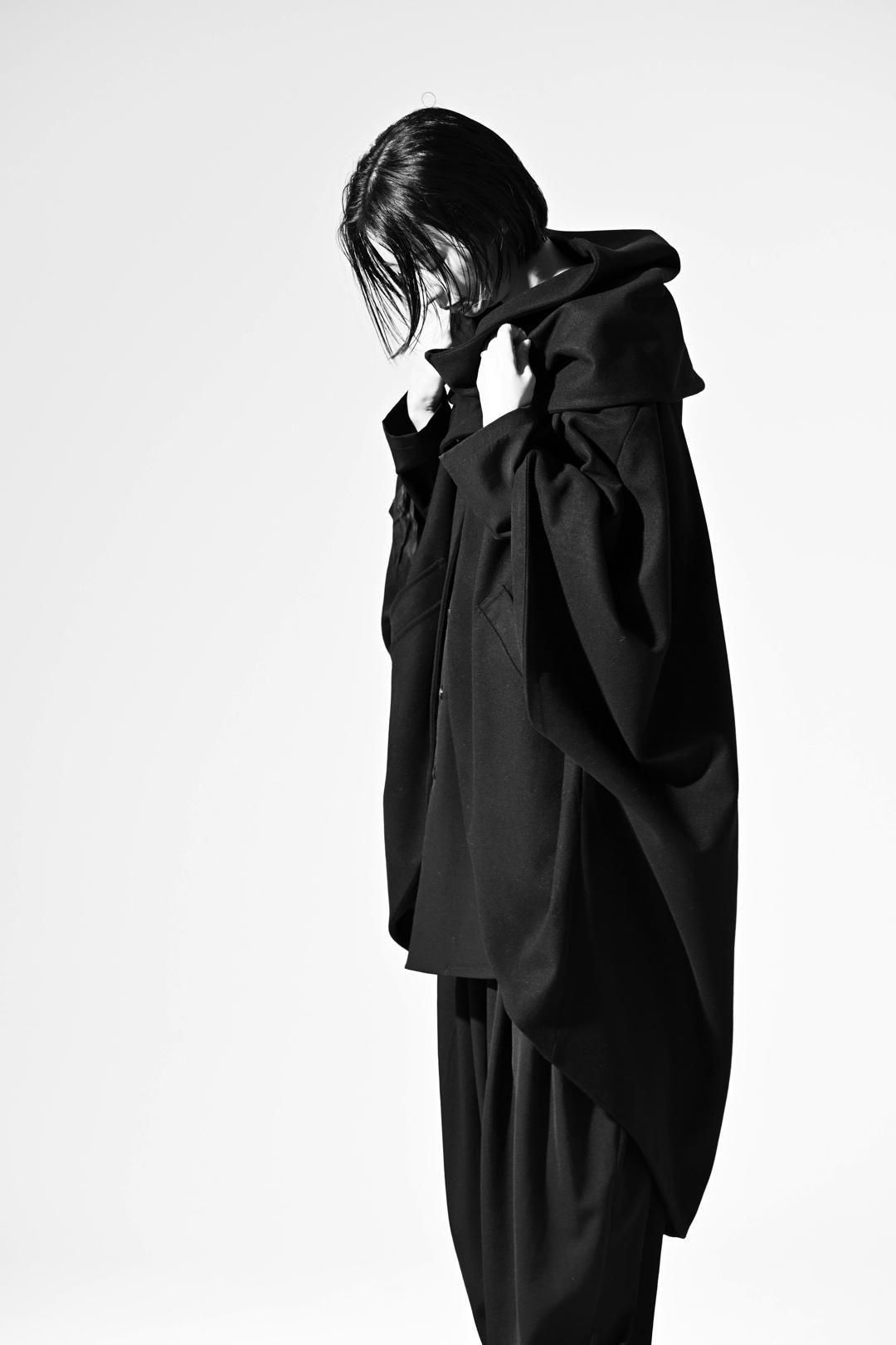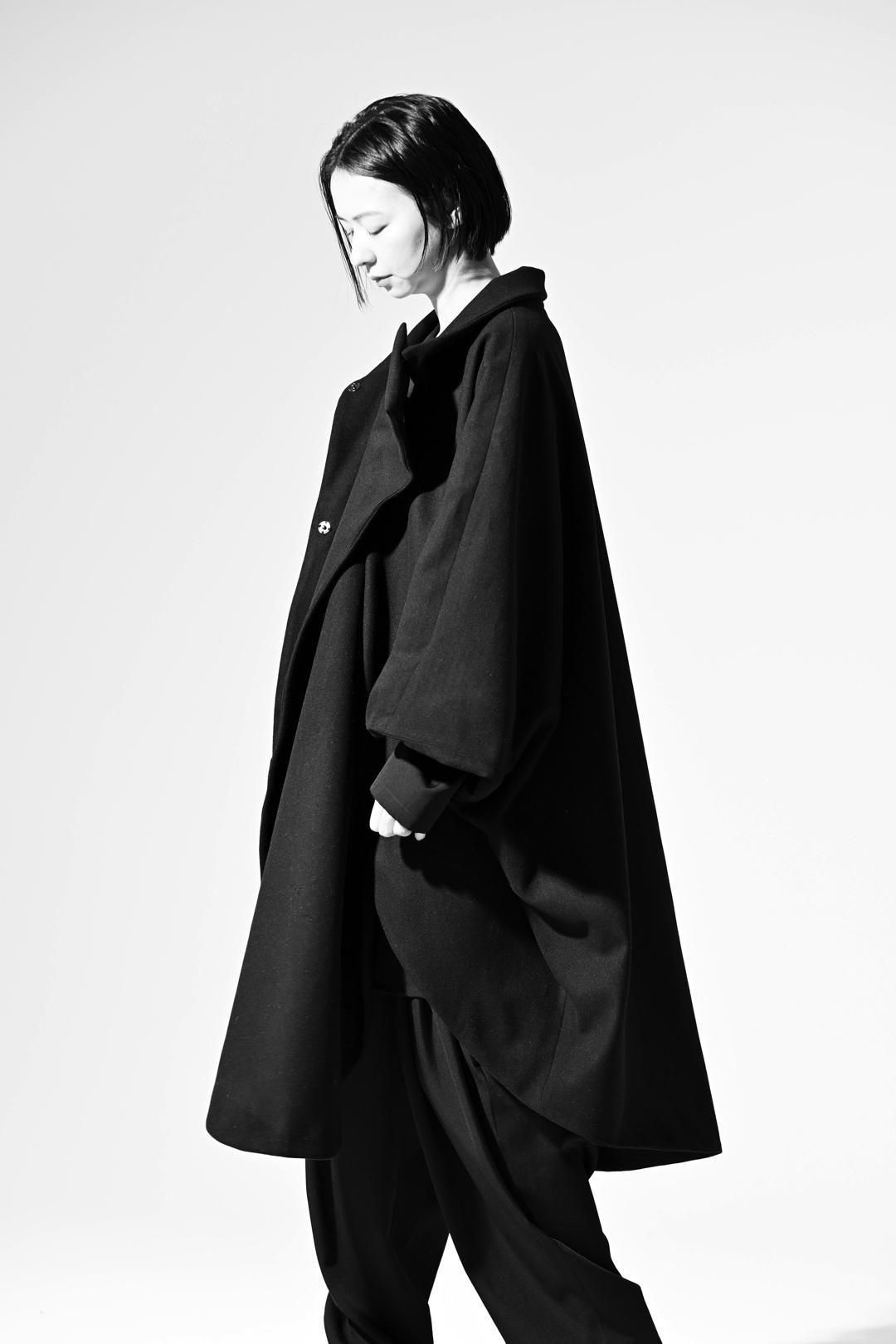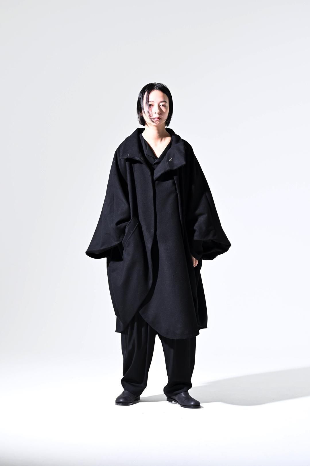 袖は深く、身幅は広く構築しながらも、着た瞬間に重心が落ち着く様に設計しております。