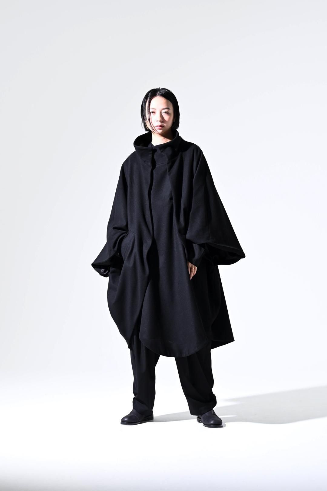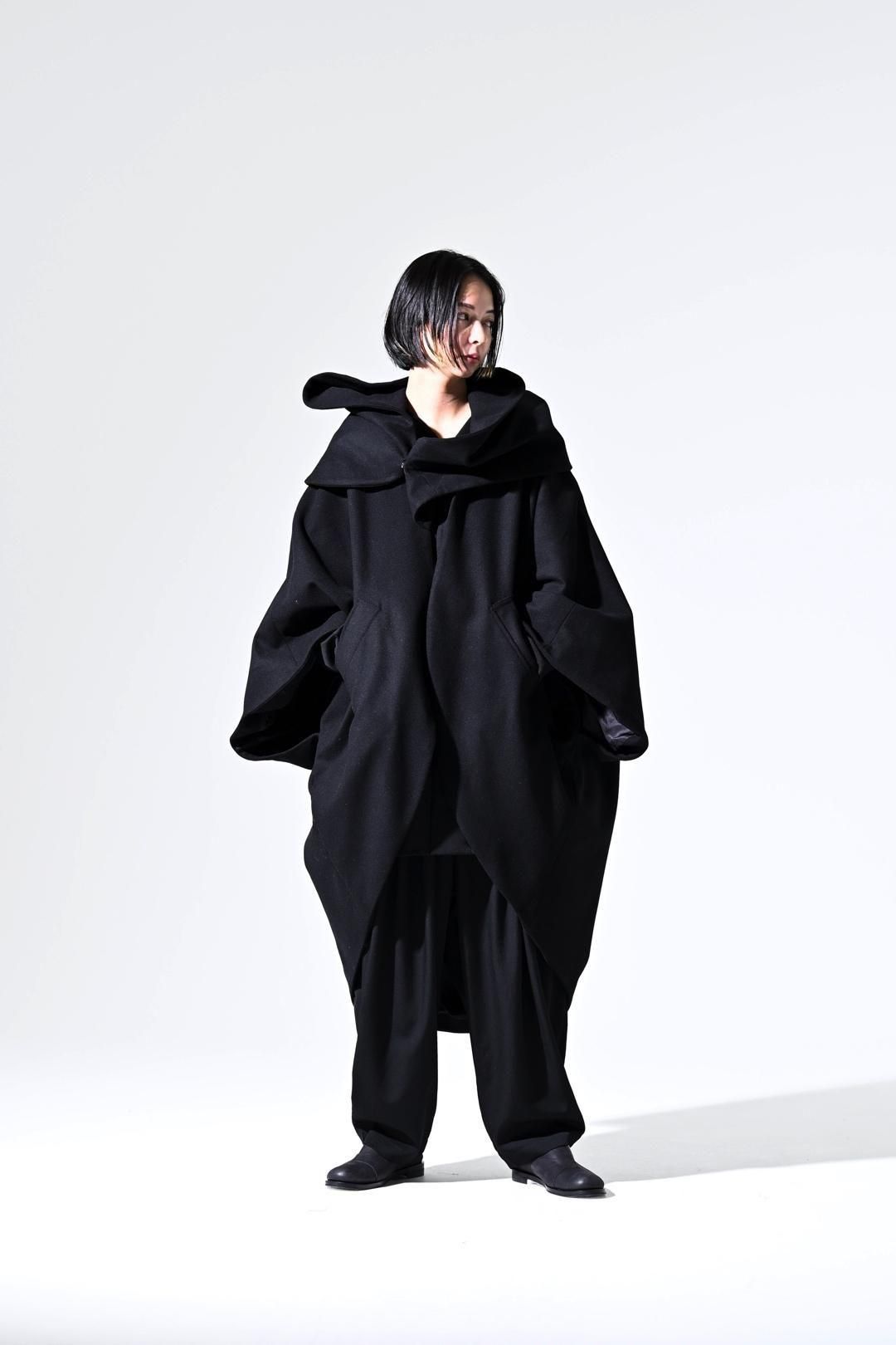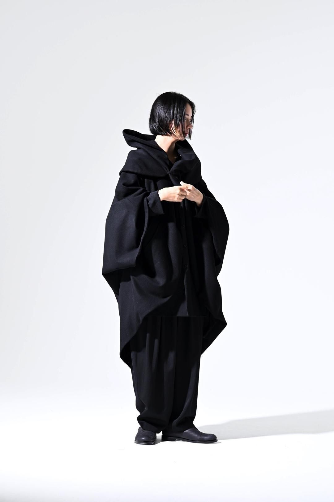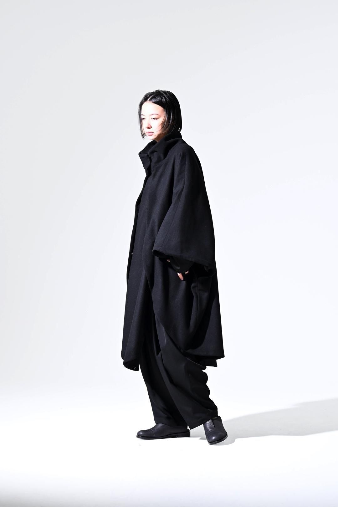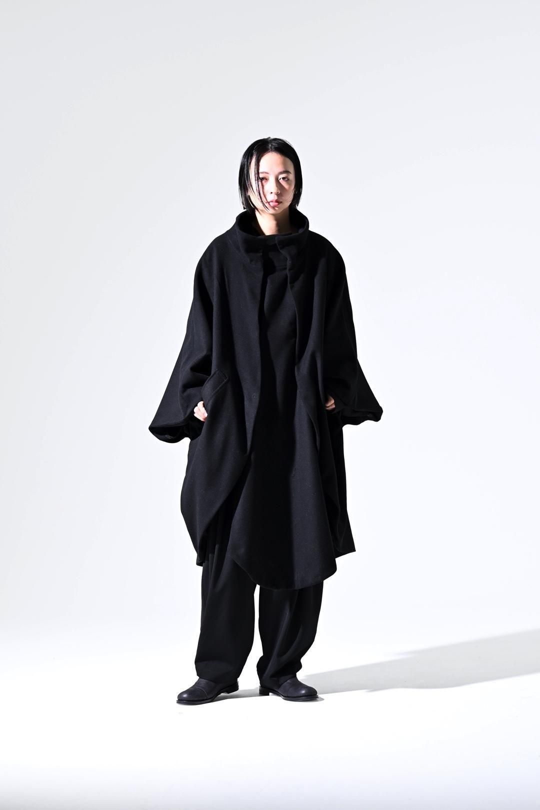 袖は深く、身幅は広く構築しながらも、着た瞬間に重心が落ち着く様に設計しております。