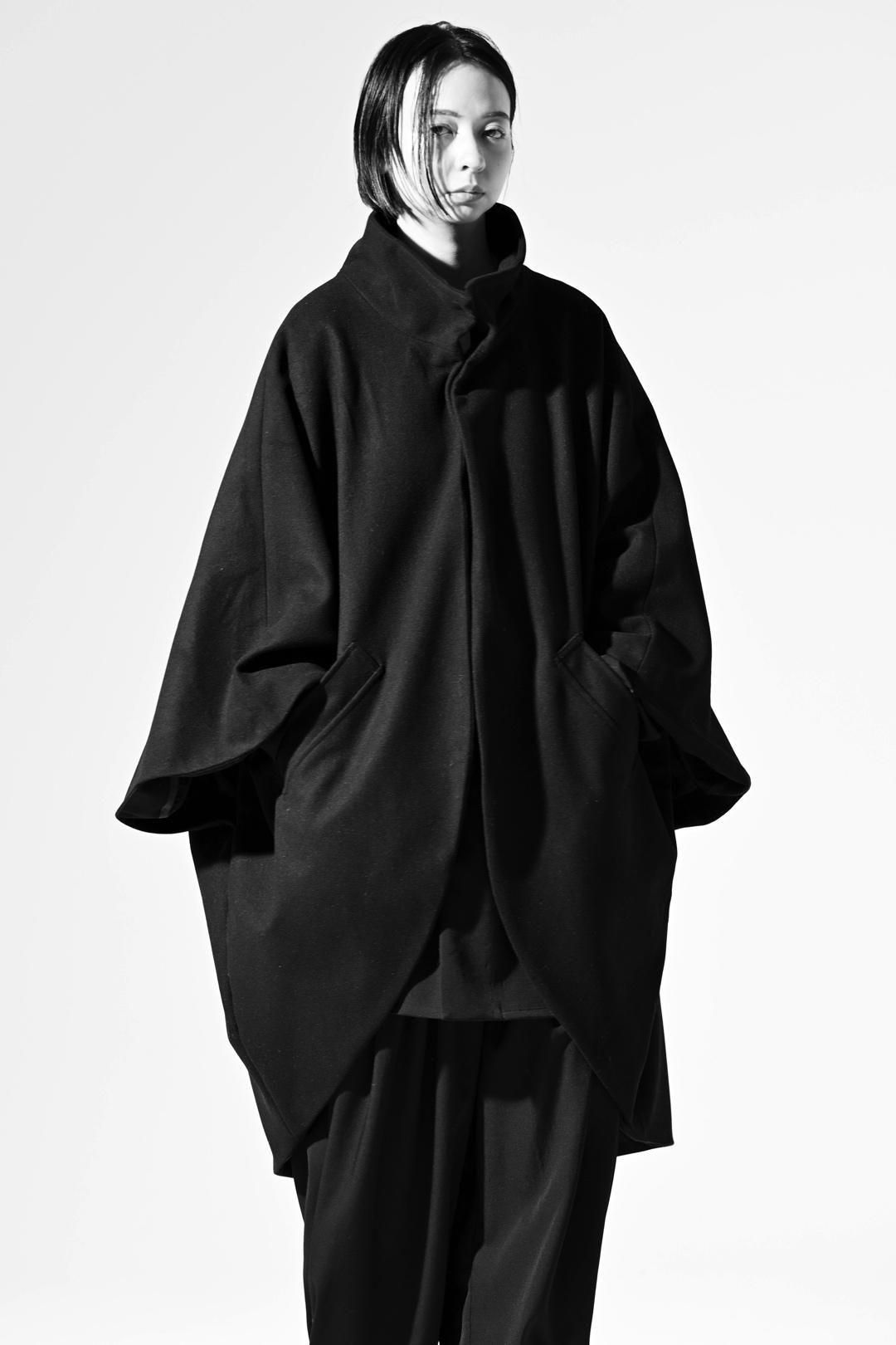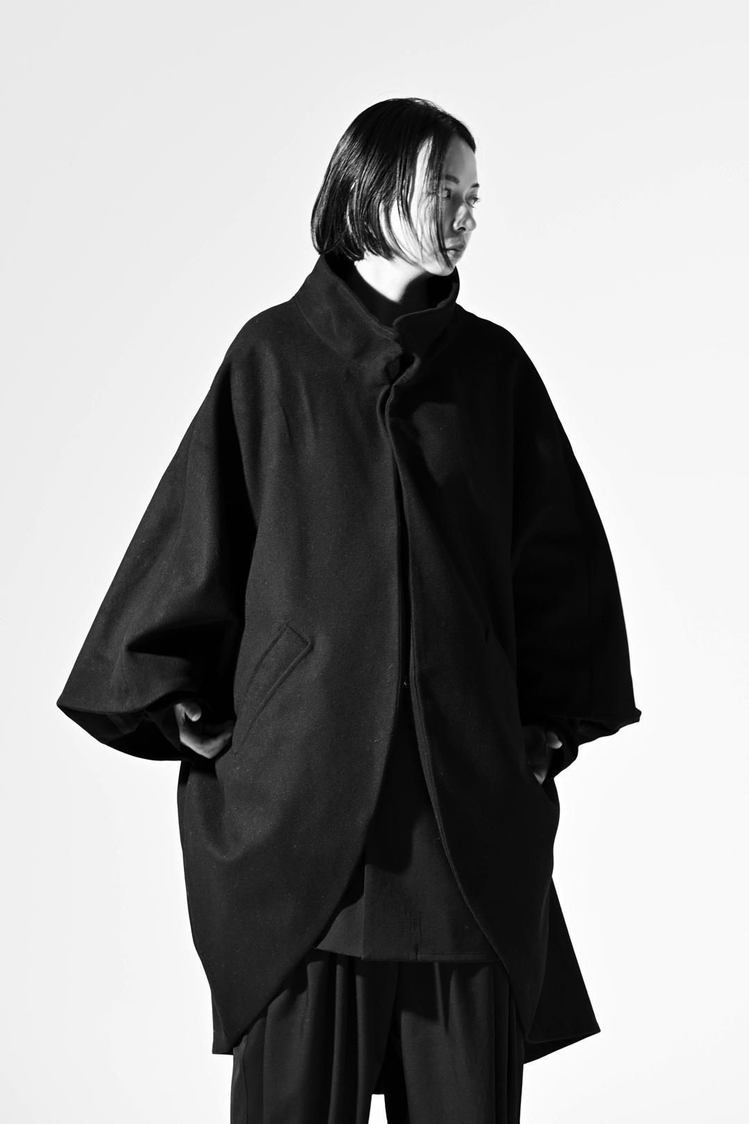 高級毛織物の産地である「尾州」で織られたSuper100’sウールのメルトンを使用した羽織コート。