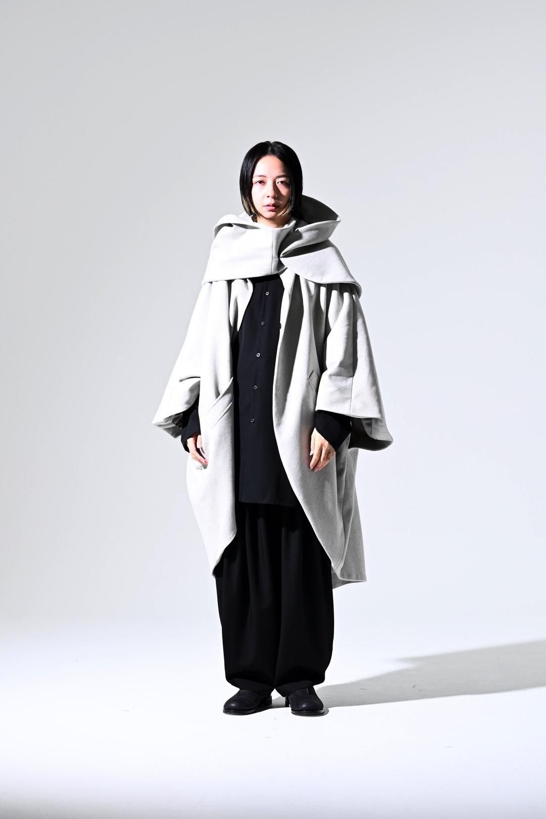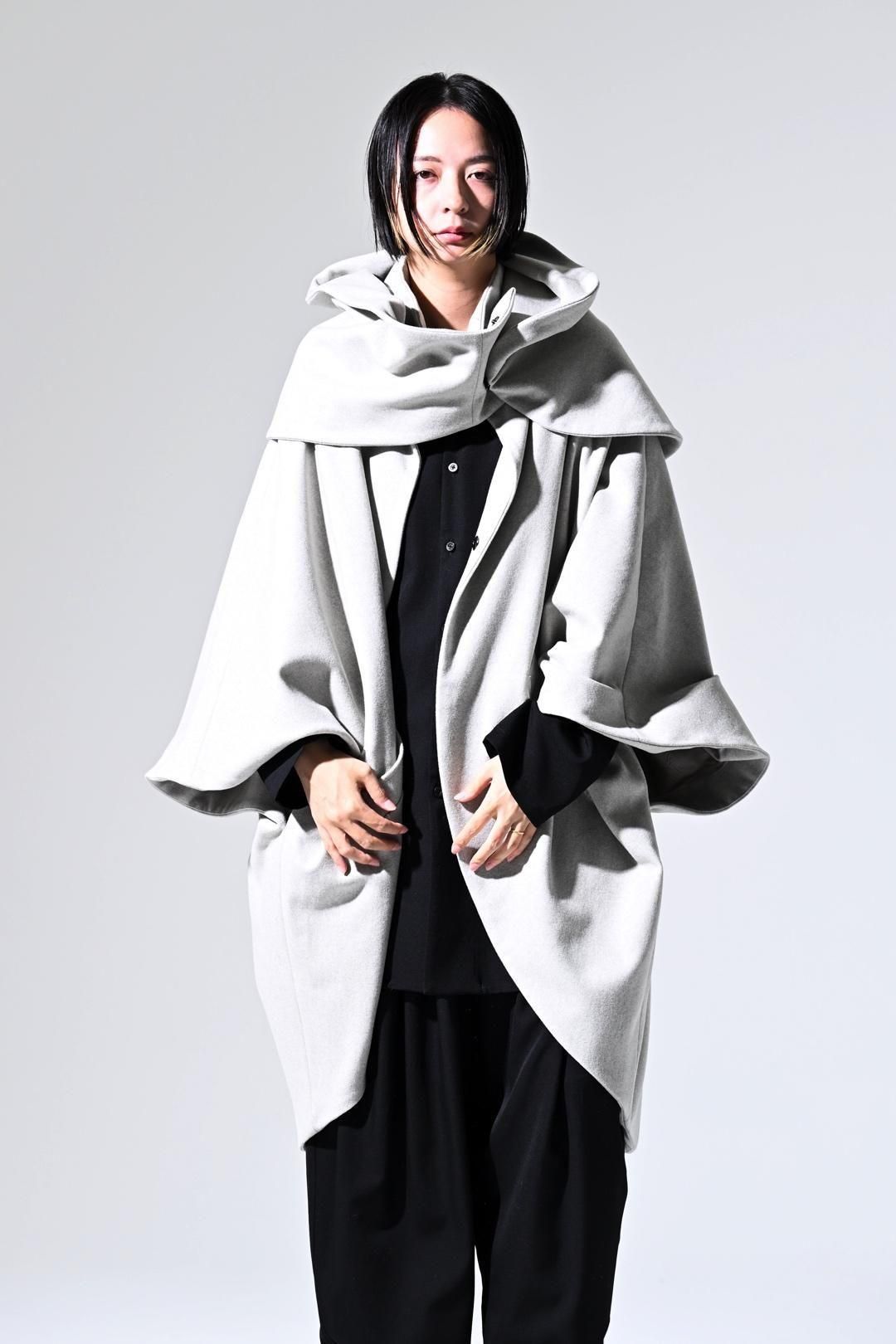 高級毛織物の産地である「尾州」で織られたSuper100’sウールのメルトンを使用した羽織コート。