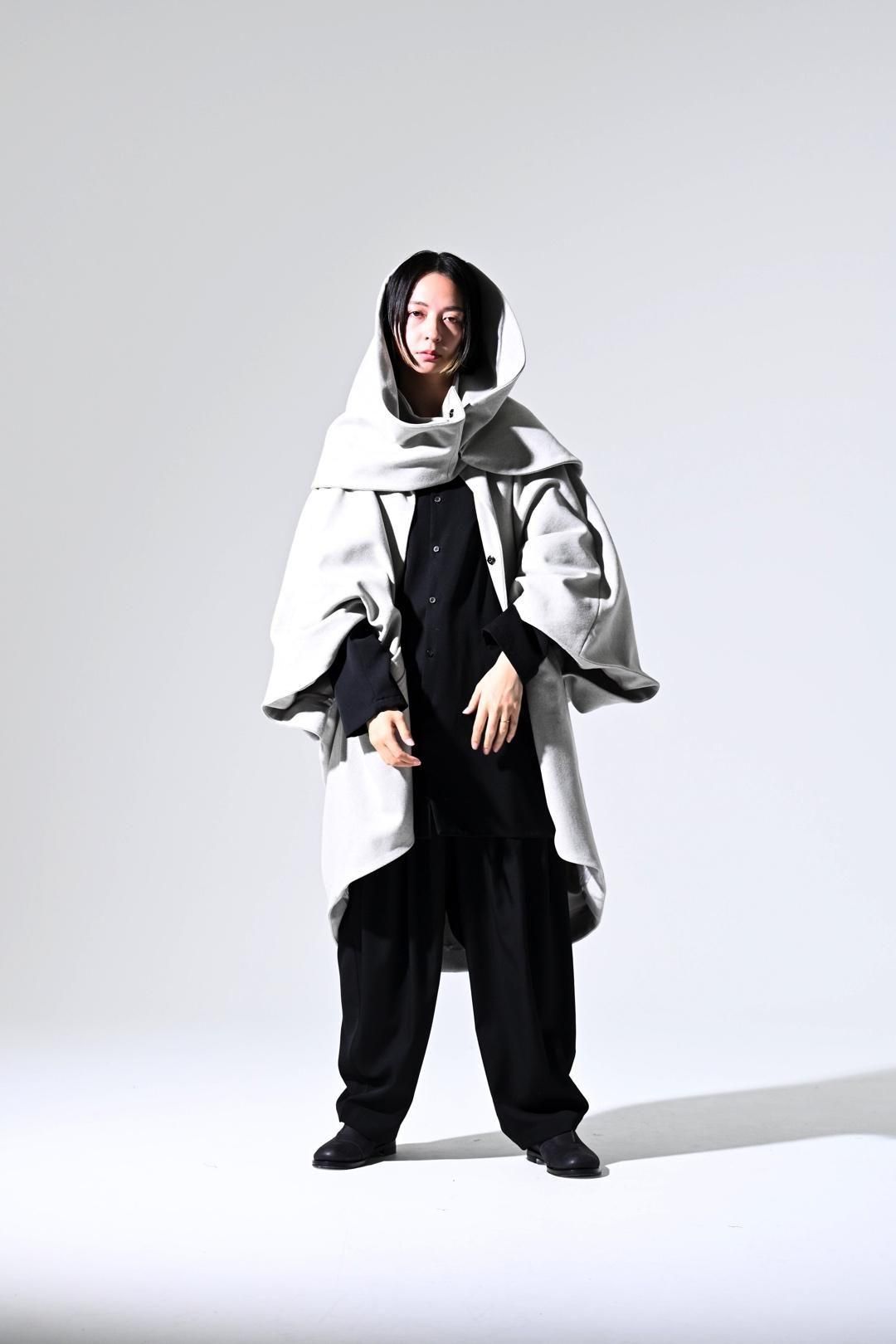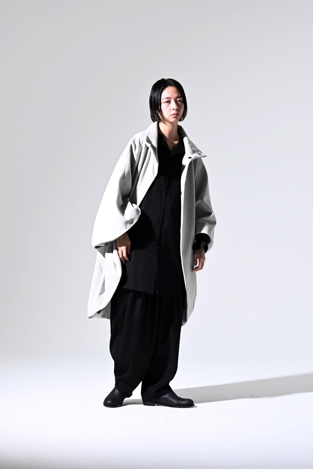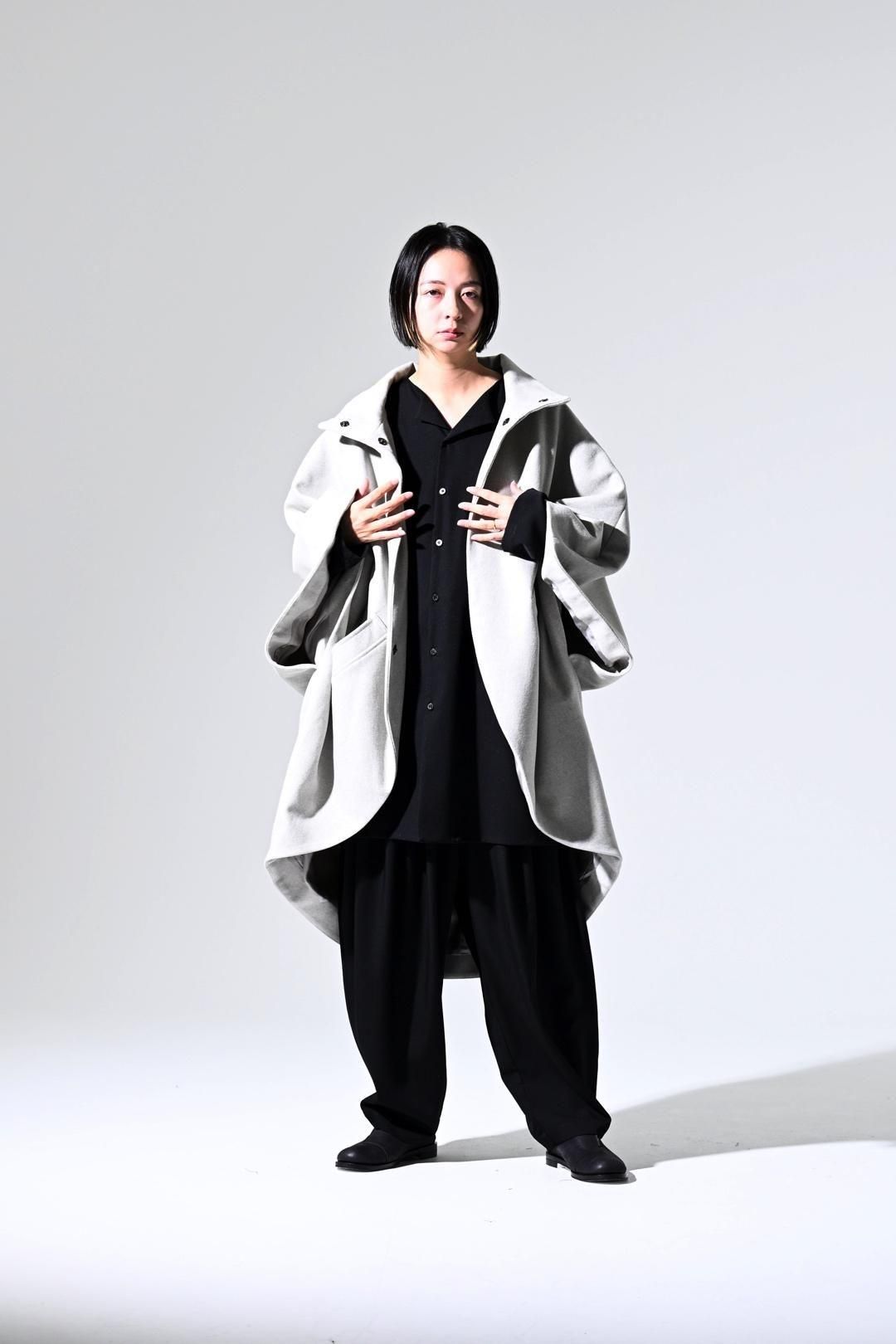 袖は深く、身幅は広く構築しながらも、着た瞬間に重心が落ち着く様に設計しております。