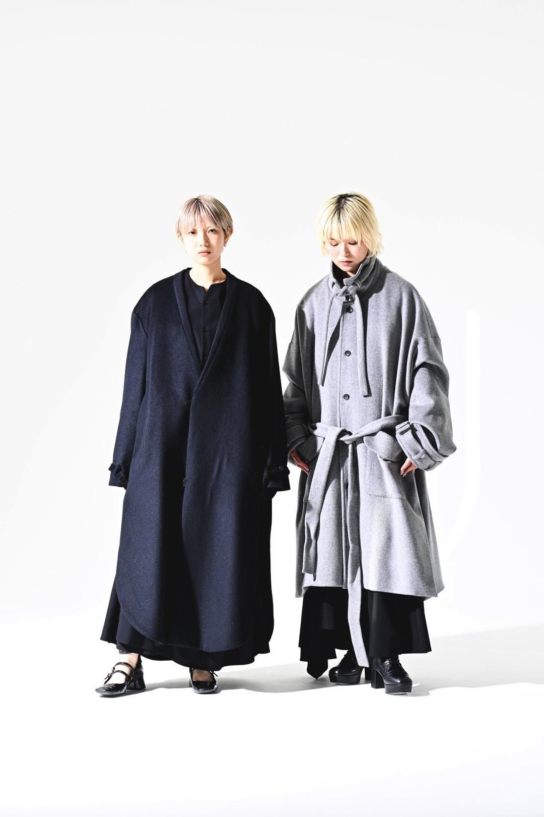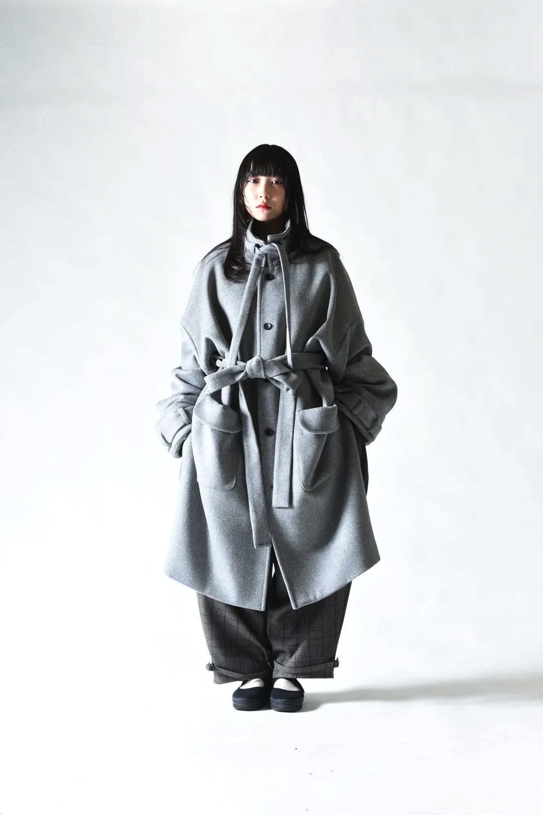 無地の一種類の生地のみの構成ながら、随所に拘りを詰め込むことで他には無いコートに仕上げました。