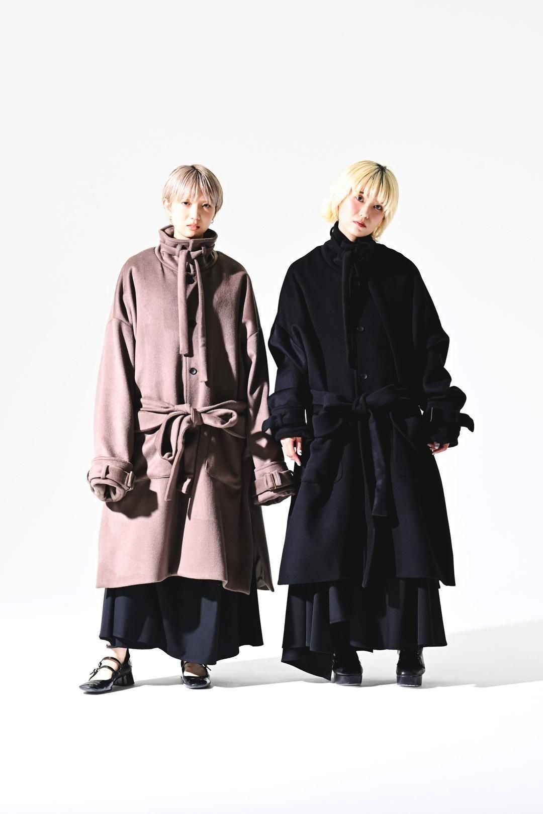 この紐を結んで頂くことでスタンドカラーコートとしてお召し頂けます。